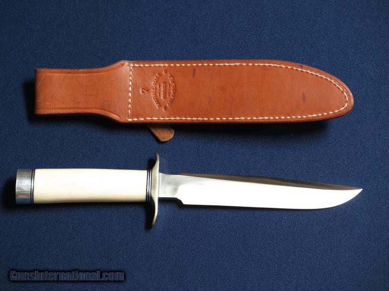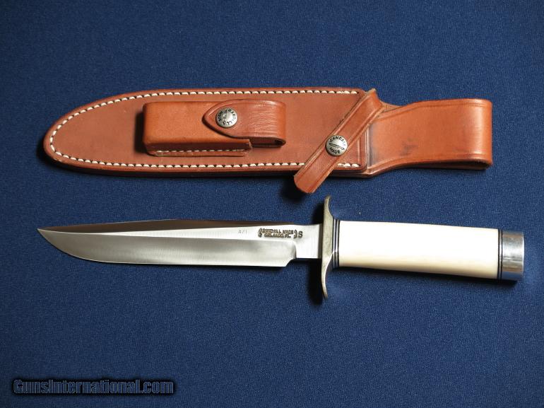 Description: Randall #1-7 Knife. Stainless. White Micarta handle. A/1 stamped on blade. Excellent. SOLD |