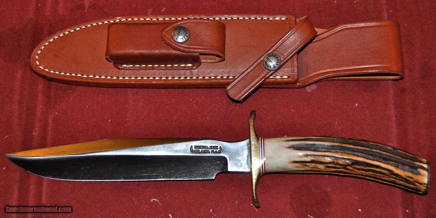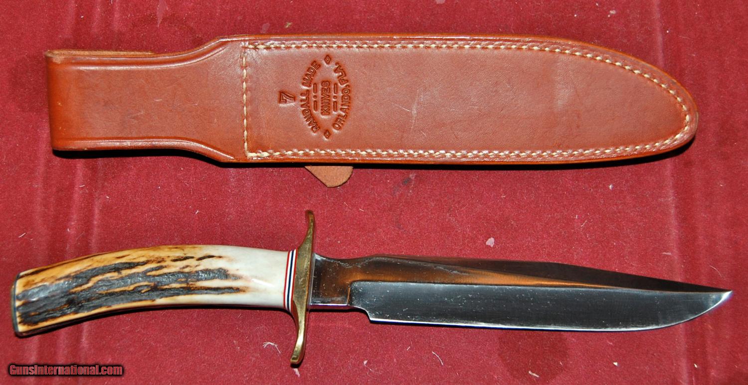 Description: Randall #1 with a 7" blade.Sambar stag handle.Brand new with the original sheath and whetstone. SOLD |