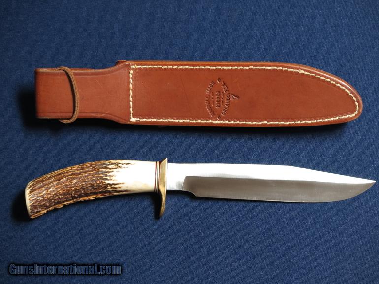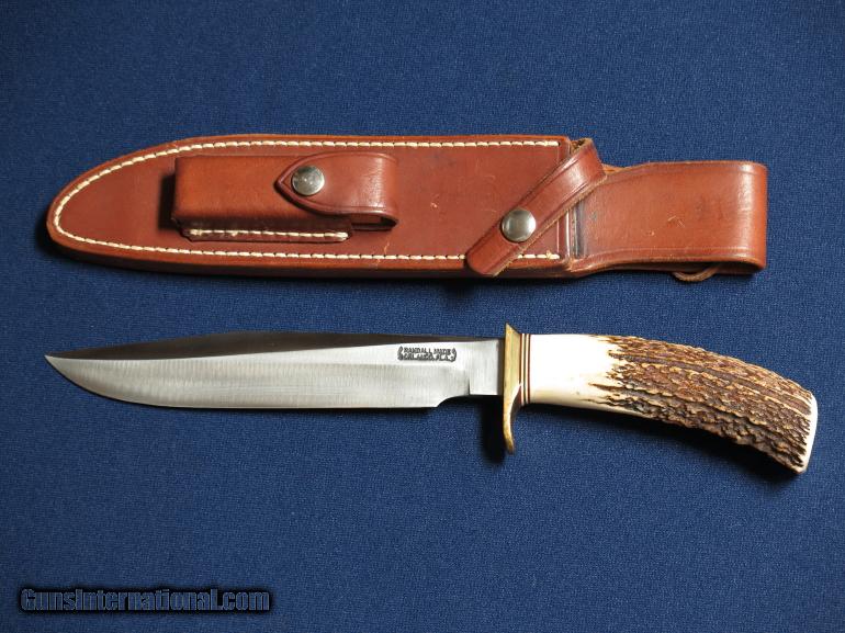 Description: Randall #1-7 knife. Stag drop handle. Red stone. Excellent. SOLD |