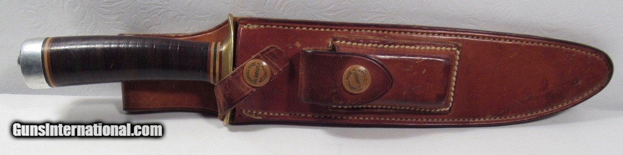Description: Randall Model 1-8 Fighting Knife; Circa 1940 to Early 1950’s – Korean War Era; Good Overall Condition; 8” Blade; Original Sheath & Stone; Price includes insured shipping; Attention Texas Buyers: We Must Collect 6.75% Sales Tax; SOLD |