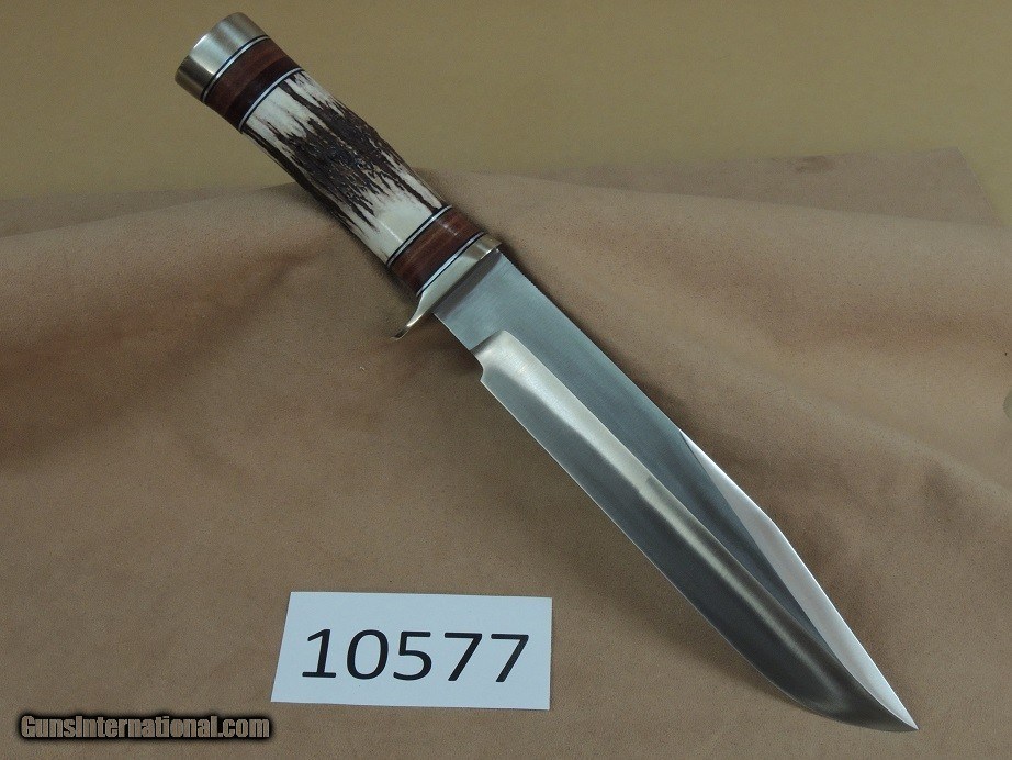 Description: Randall Made Knife Model 12, 9" Stainless Blade, Stag Handle with Leather Spacers, Sheath with Stone $1150 ******* (PLEASE REFERENCE OUR INVENTORY NUMBER) (PAYMENT OPTIONS) (Postal Money Order) (Cashiers Checks) (Personal Checks (Item held until Check Cleared) ***(Layaway 120 days-(No Interest)-(Pay any way, any time you like over the term) -(Deposit required)*** (Credit Cards Visa or Master Card 3.5% fee added to total sale) (GA residents 7% sales Tax Applies) (BEST PHONE/TEXT 229-424-8450) (SHIPPING $25.00) SOLD |