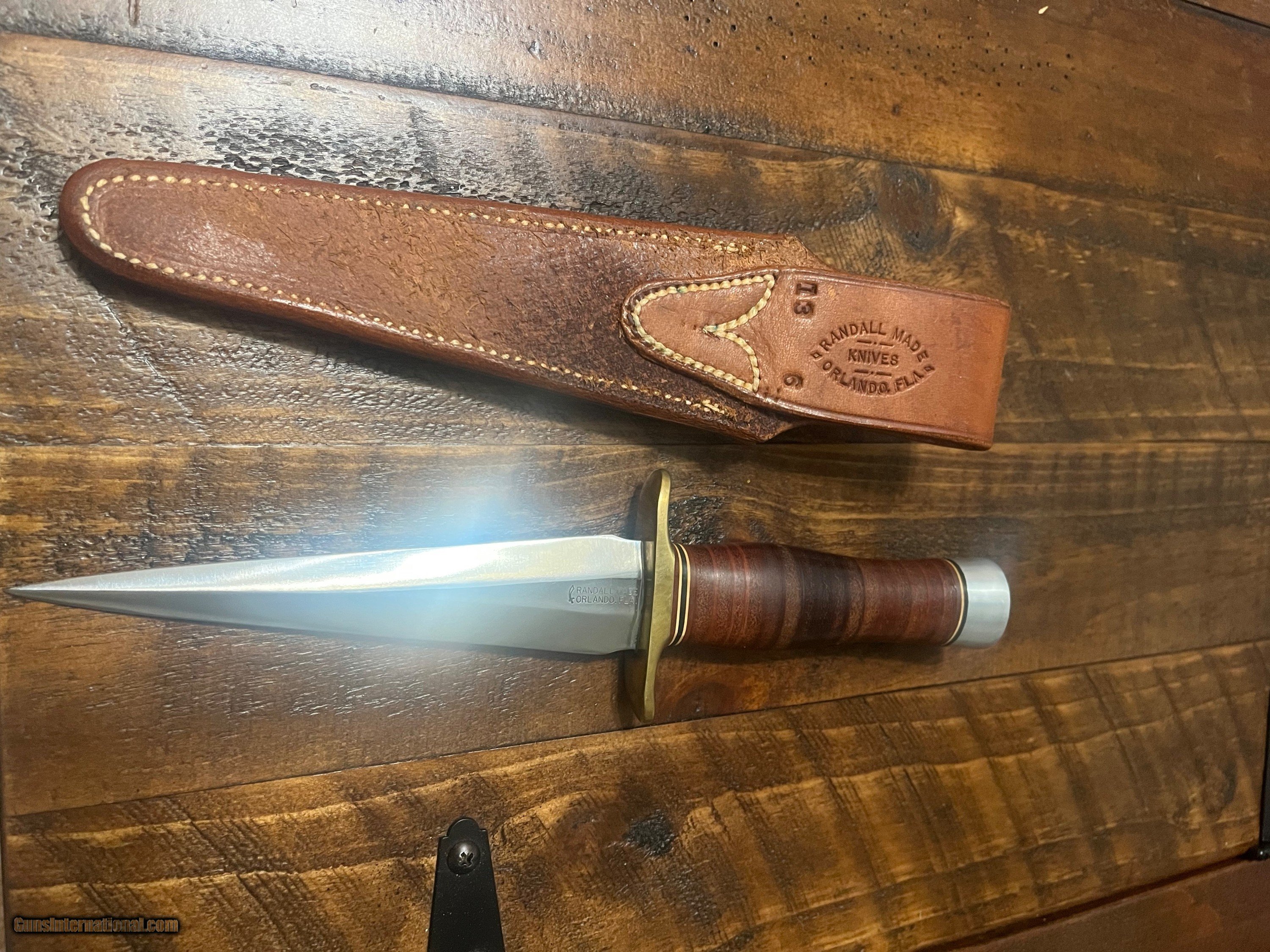Description: RANDALL MADE KNIVES 13-6 LEATHER WRAP HANDLE BRASS HILT ALUMINUM BUTTCAP O1 TOOL STEEL BLADE JOHNSON ROUGH BACK SHEATH SOLD |