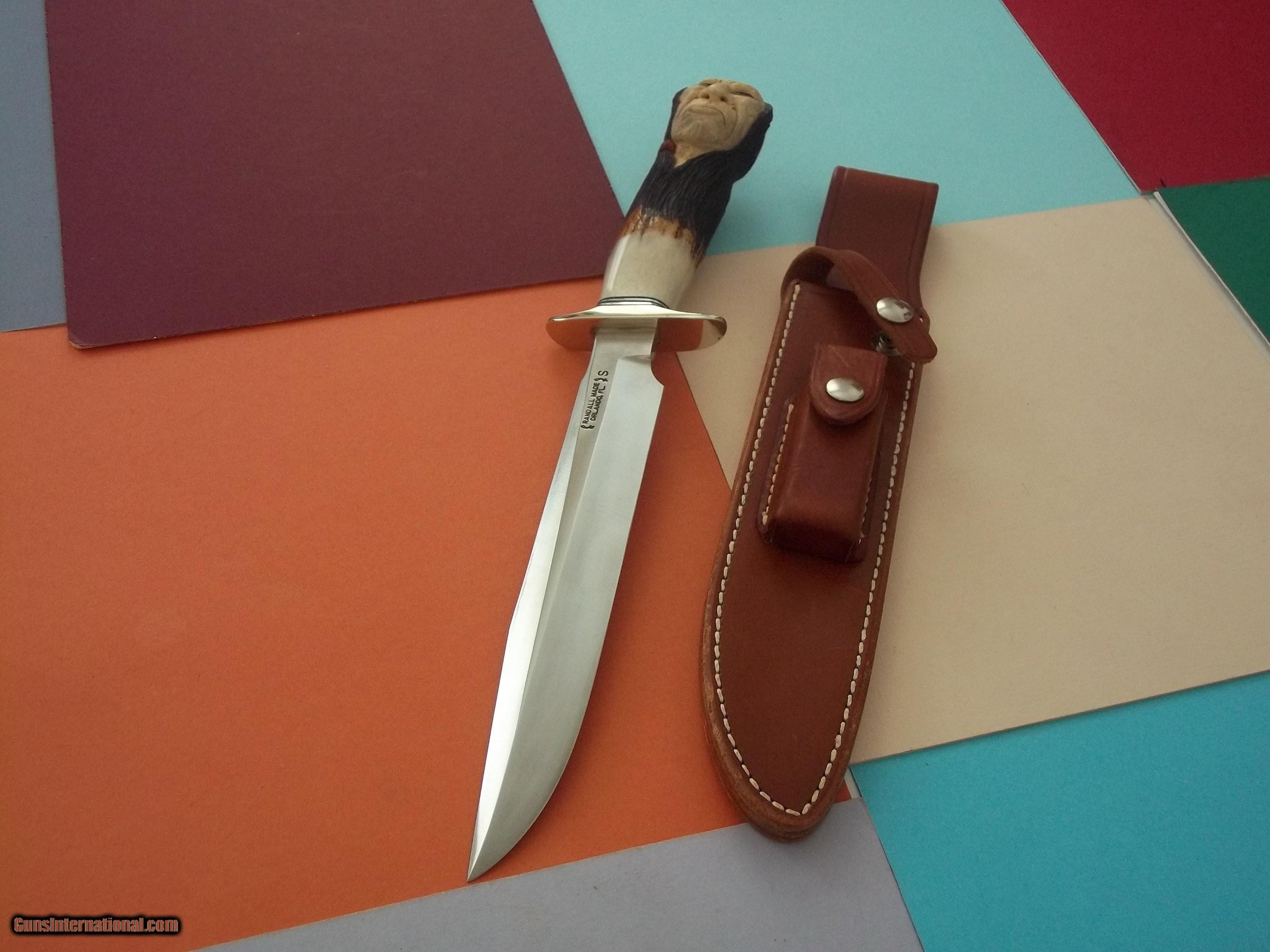 Randall Made Knives Model # 1-8" All-Purpose Fighting Knife "RED CLOUD" carving by Paul G. Grussenmeyer 1993 production