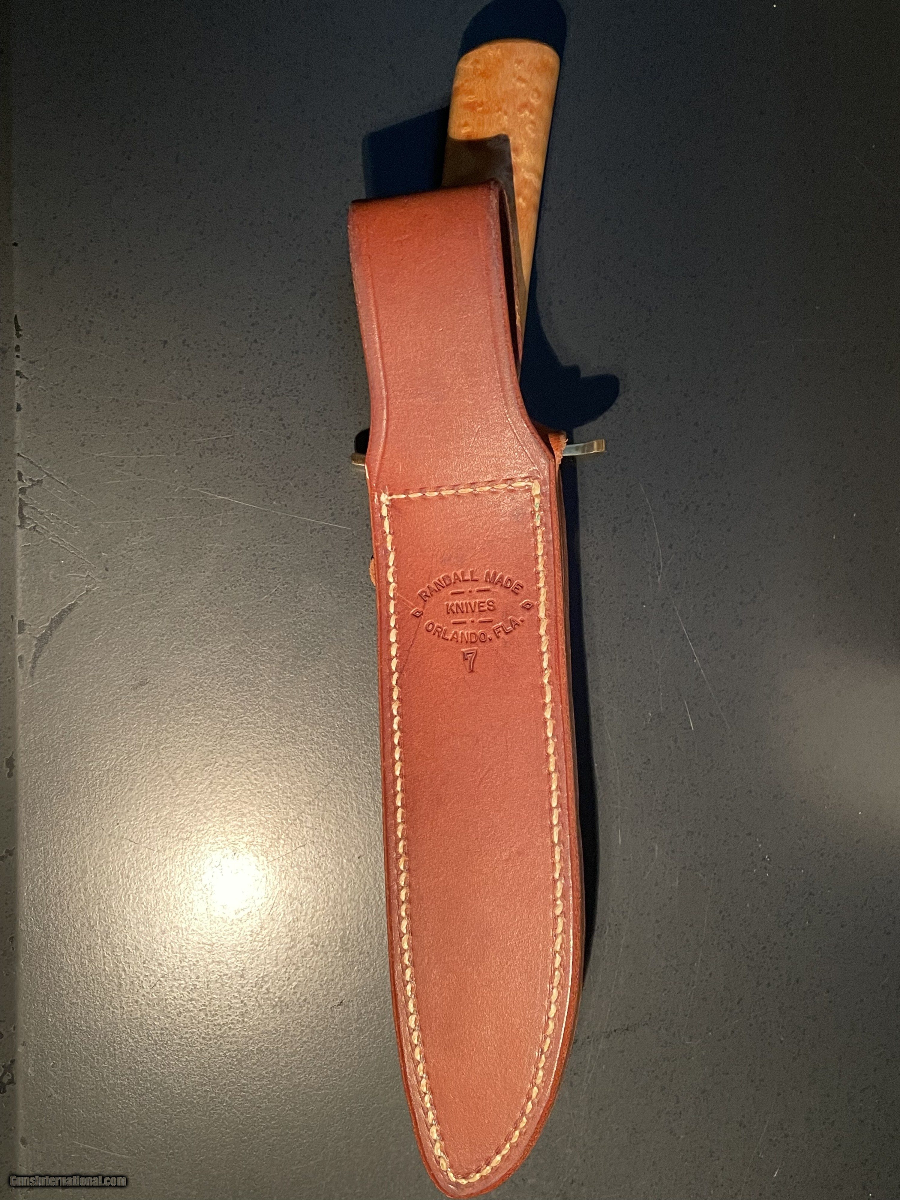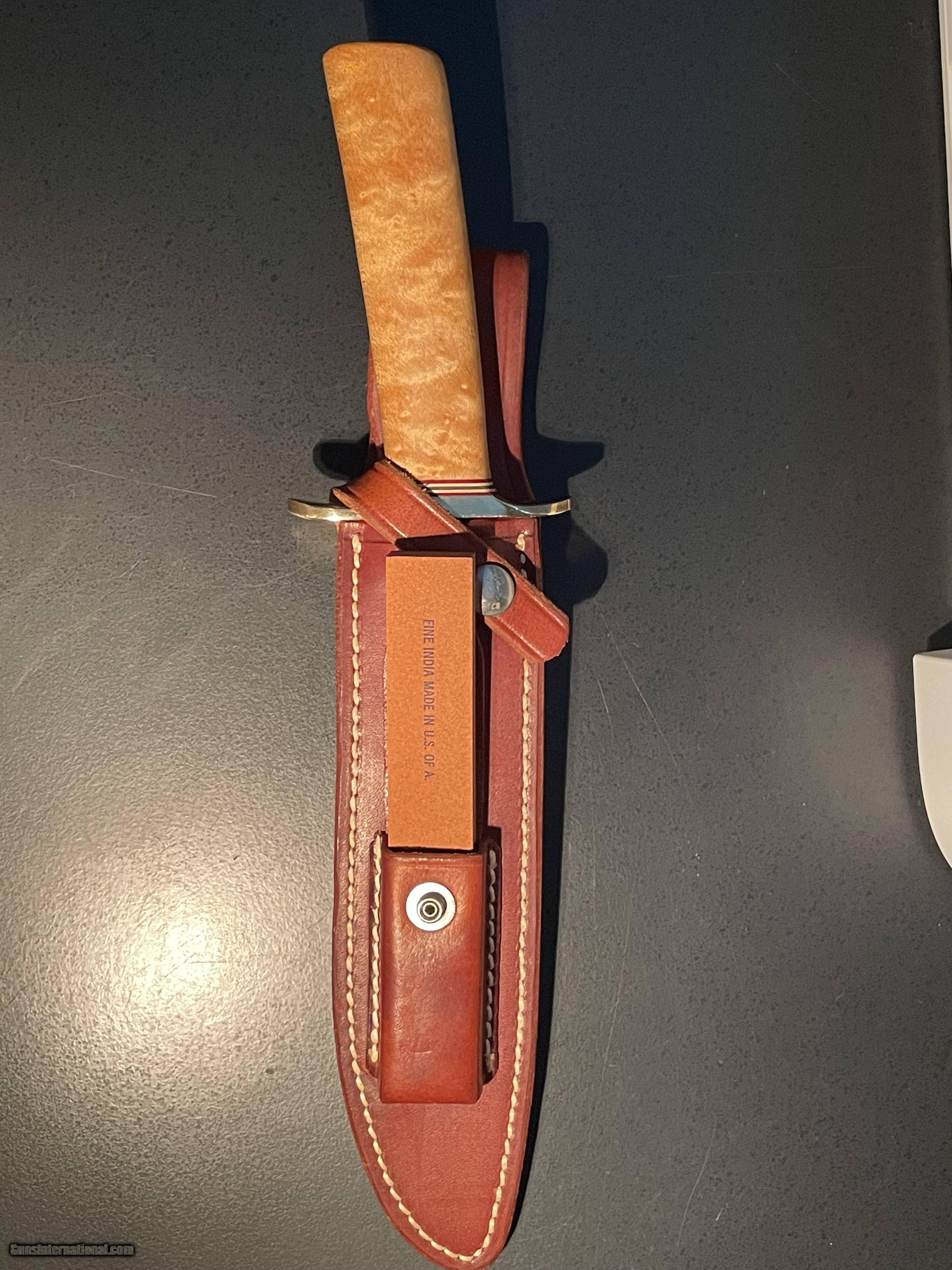 Description: This Randall Made Model 1 is a unique, handmade combat knife. It has a 7 inch carbon steel blade with hidden tang, birdseye maple handle, an authentic Randall leather sheath, and sharpening stone. This knife has never been carried and never used. Price: $1,200.00 Contact Seller |