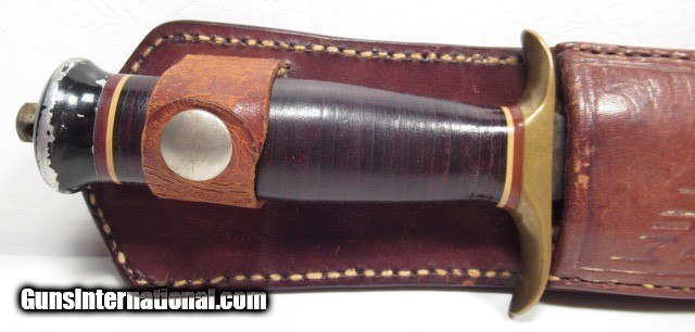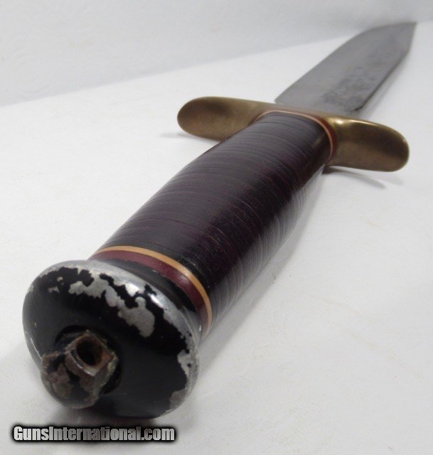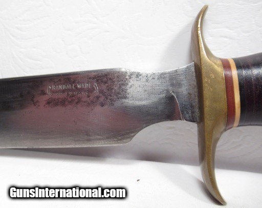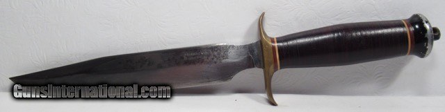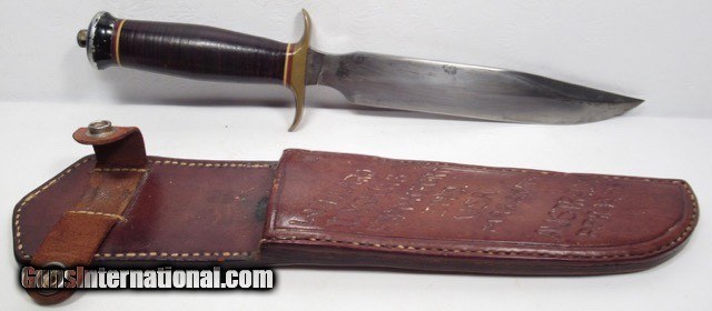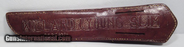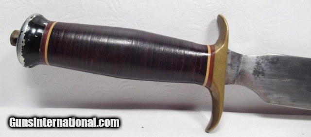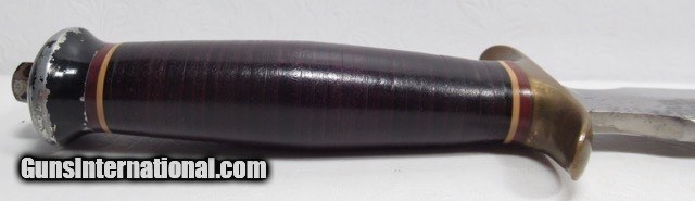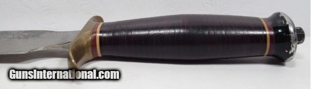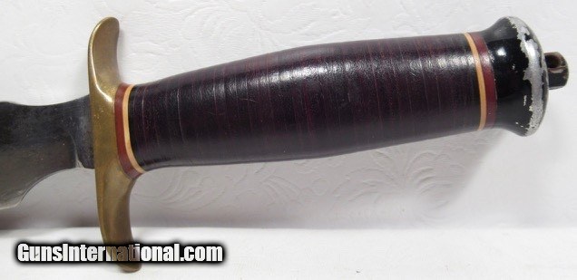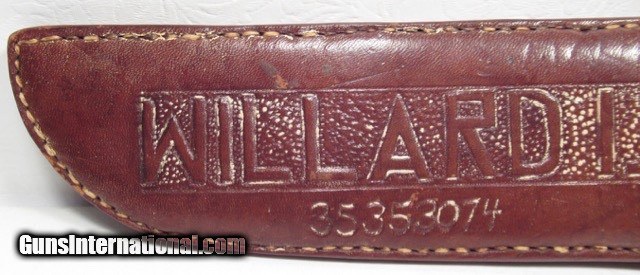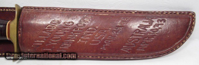 Description: Randall Model 1 WWII Era Knife; 8” Blade with Neat Sheath; Springfield Mass. Made; Identified to Warrant Officer Willard I. “Slim” Young from Frankfort Indiana; Service #35353074; Enlisted May 5, 1942; Prior occupation was Shoemaker & Shoe repairman; Thus the Great Work on Sheath; No license required for shipping; from my own personal collection; All items shipped fully insured- Knives, Swords & Sabers $30; return policy: three days inspection from the date the item is received; full refund of shipping both ways ONLY IF THE ITEM IS MISREPRESENTED. Note:International sales only as laws permit. SOLD |