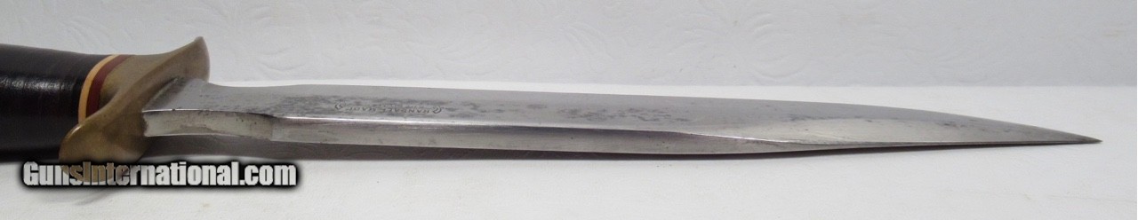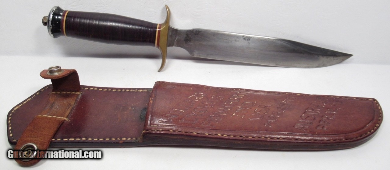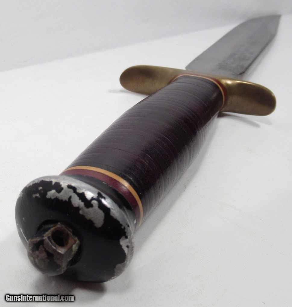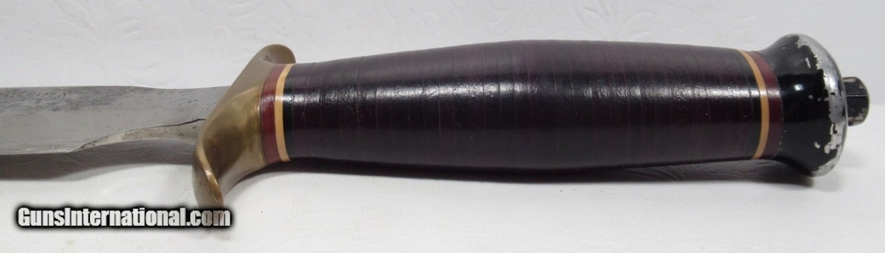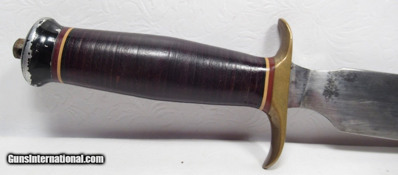 Description: Randall Model 1 WWII Era Knife; 8” Blade with Neat Sheath; Springfield Mass. Made; Identified to Warrant Officer Willard I. “Slim” Young from Frankfort Indiana; Service #35353074; Enlisted May 5, 1942; Prior occupation was Shoemaker & Shoe repairman; Thus the Great Work on Sheath; Price Includes Insured Shipping; SOLD |