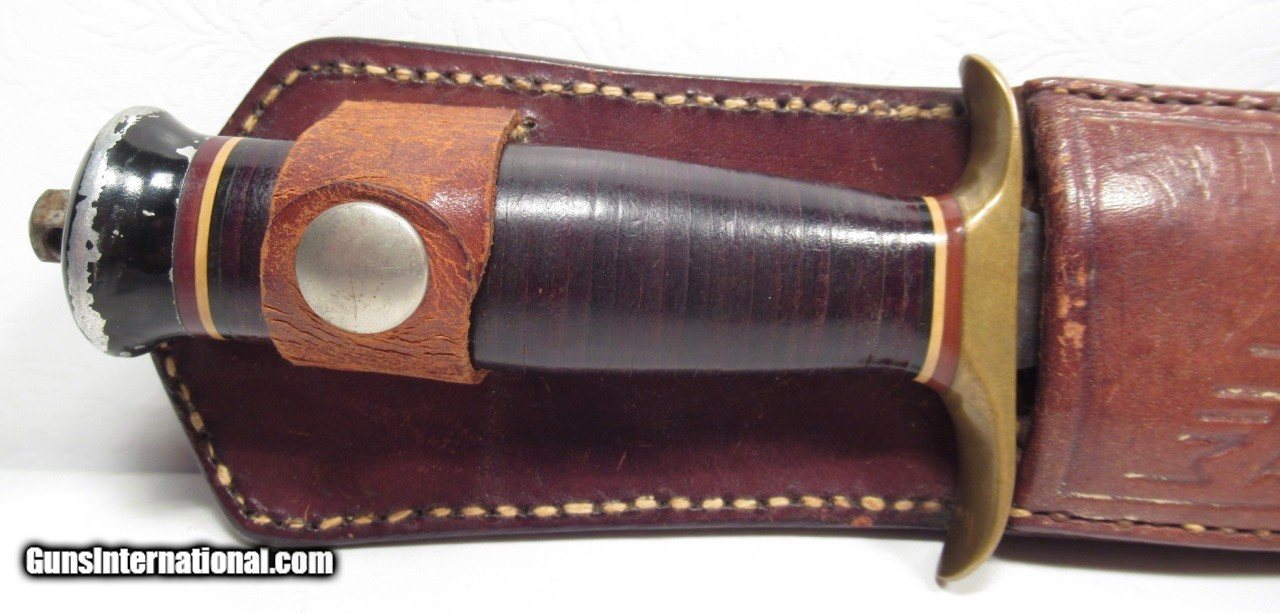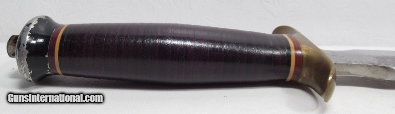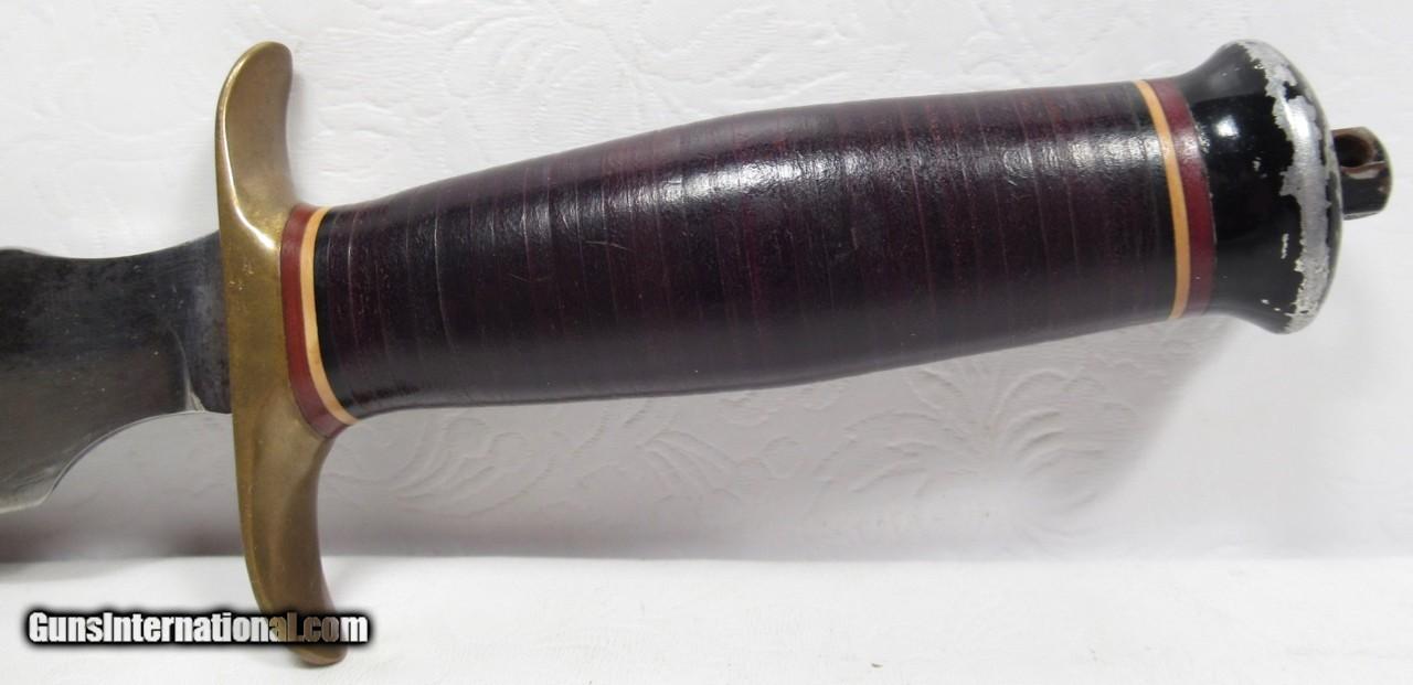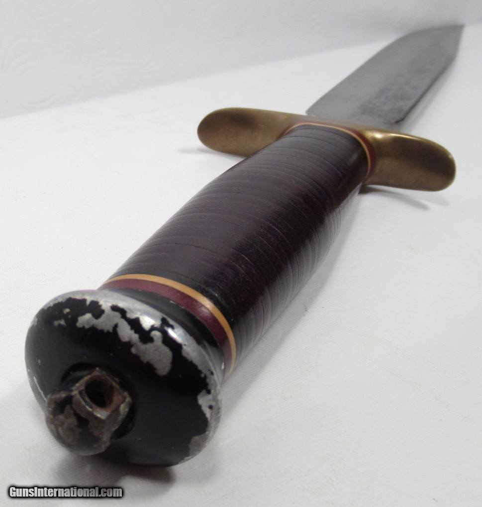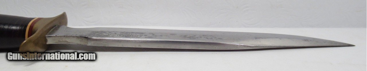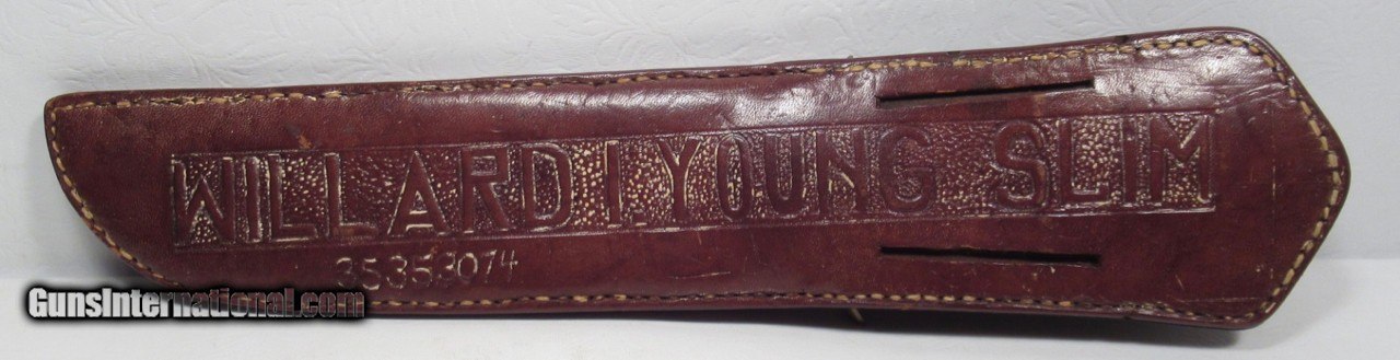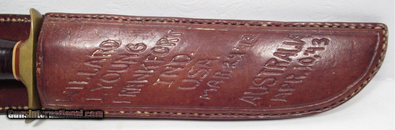 Description: SALE PENDING!!!Randall Model 1 WWII Era Knife; 8” Blade with Neat Sheath; Springfield Mass. Made; Identified to Warrant Officer Willard I. “Slim” Young from Frankfort Indiana; Service #35353074; Enlisted May 5, 1942; Prior occupation was Shoemaker & Shoe repairman; Thus the Great Work on Sheath; Price Includes Insured Shipping; Attention Texas Buyers: We Must Collect 6.75% Sales Tax; SOLD |