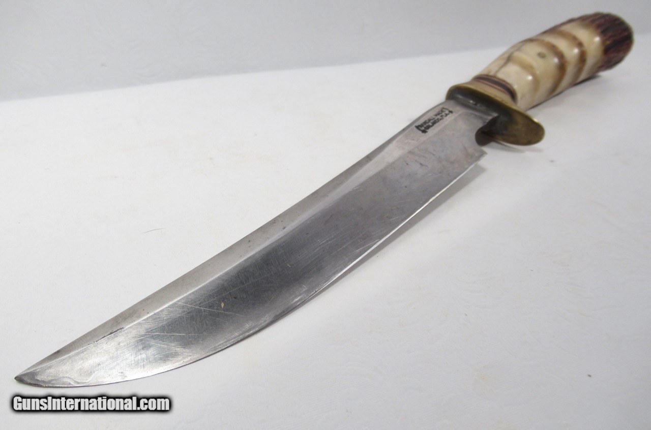 Description: Nice RMK (Randall Made Knife) No. 4; 7” Blade; Stag Handle with Original Heiser Sheath; Formerly Belonging to Korean War Veteran Don Artz; His Name is on Blade; See Copy of Letter; Both Knife and Sheath in Very Good Condition; Made 1953; PERSONAL PROPERTY of Harold Wieser; Price: $2,450 + $30 S&H; Price includes insured shipping; return policy: three days inspection from the date the item is received; full refund of shipping both ways ONLY IF THE ITEM IS MISREPRESENTED. SOLD |