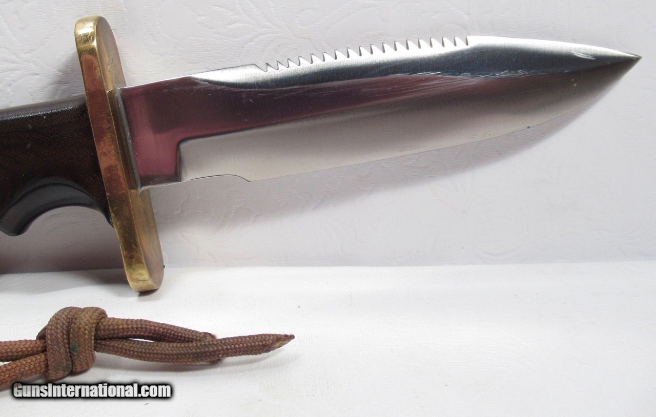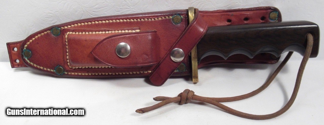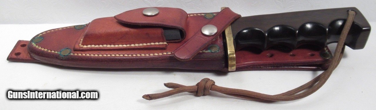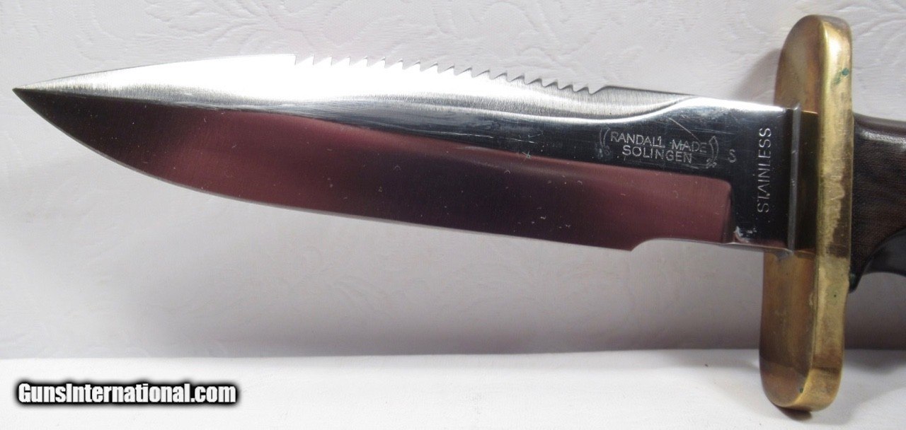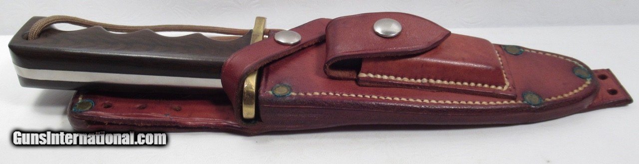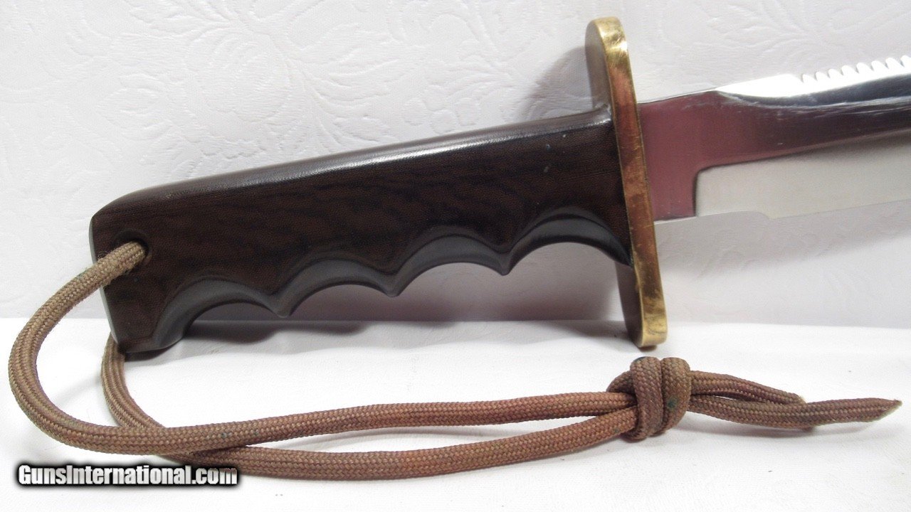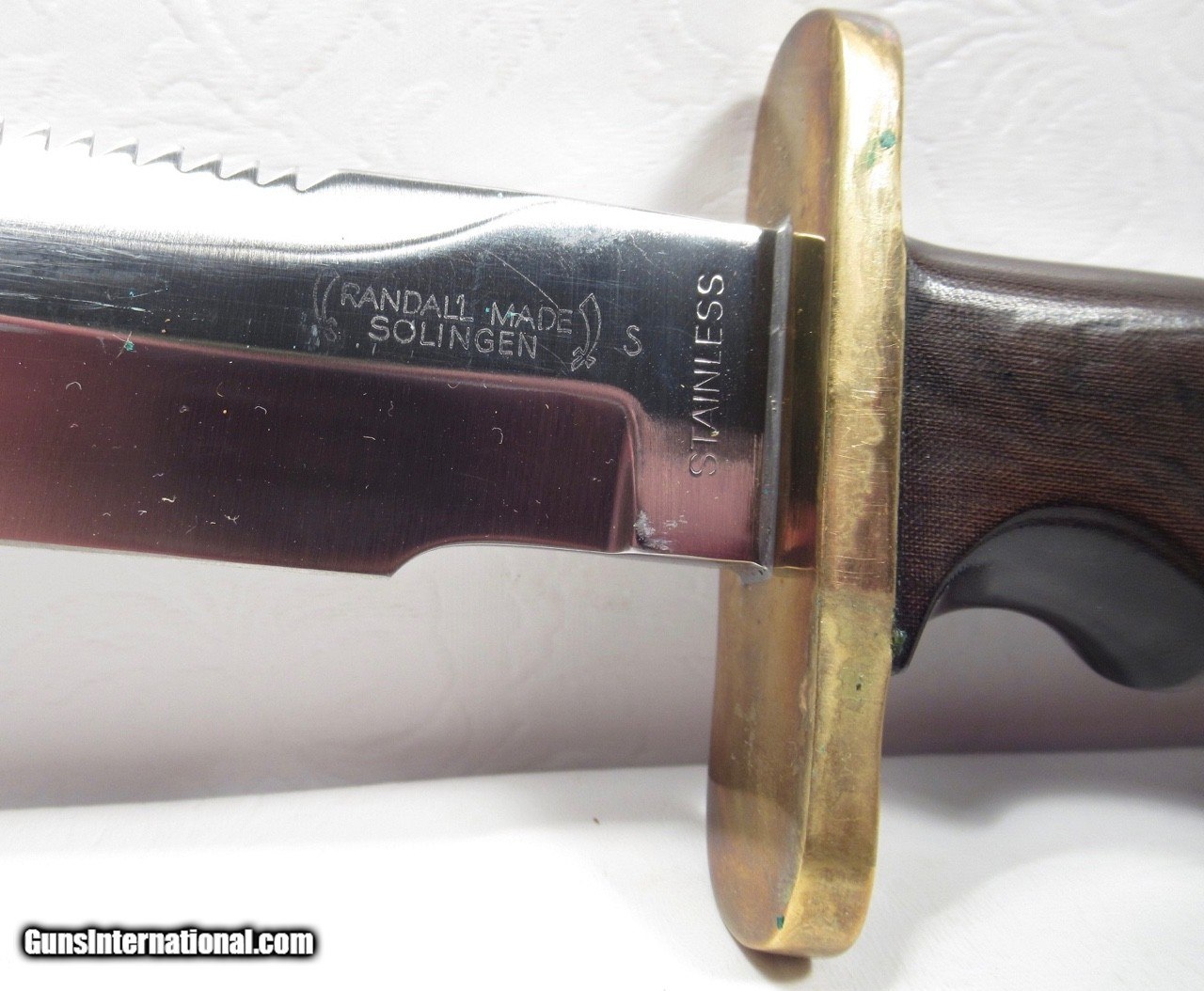 Description: SOLD!!! Randall Made Knife (RMK) Model No. 15 “Airman” Stainless Steel 5 5/8” Blade with Saw Back; Brown Micarta Handle; Original Sheath with Sharpening Stone; Excellent Condition for a 1960’s Vietnam Era Randall Knife; Price includes insured shipping; Attention Texas Buyers: We Must Collect 6.75% Sales Tax; SOLD |