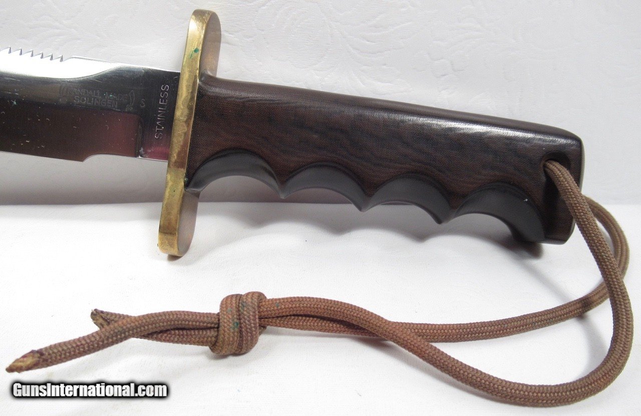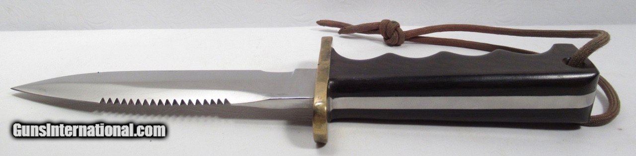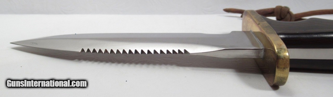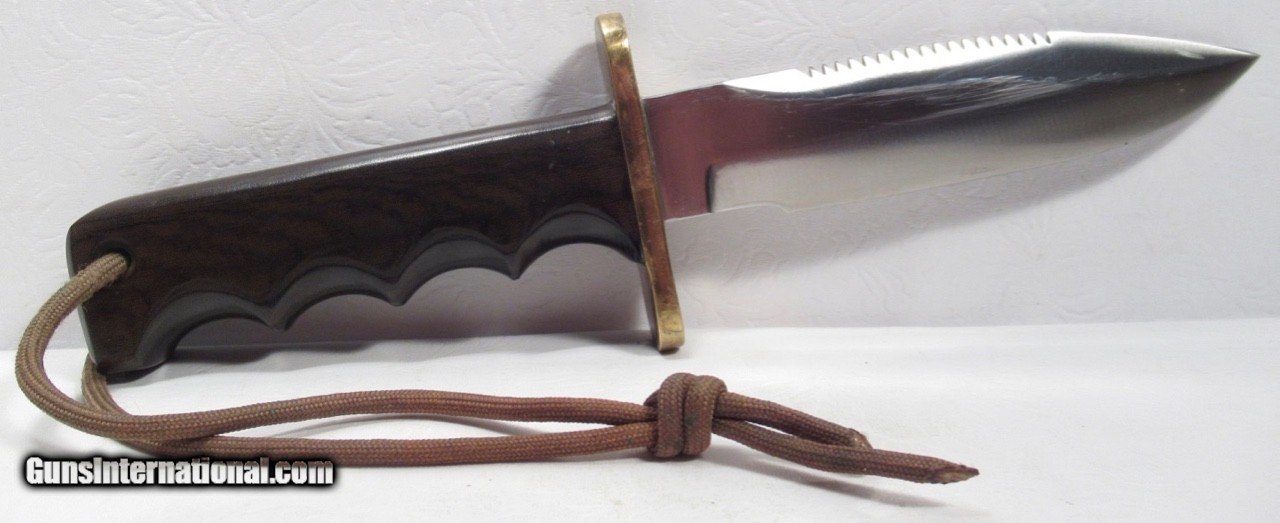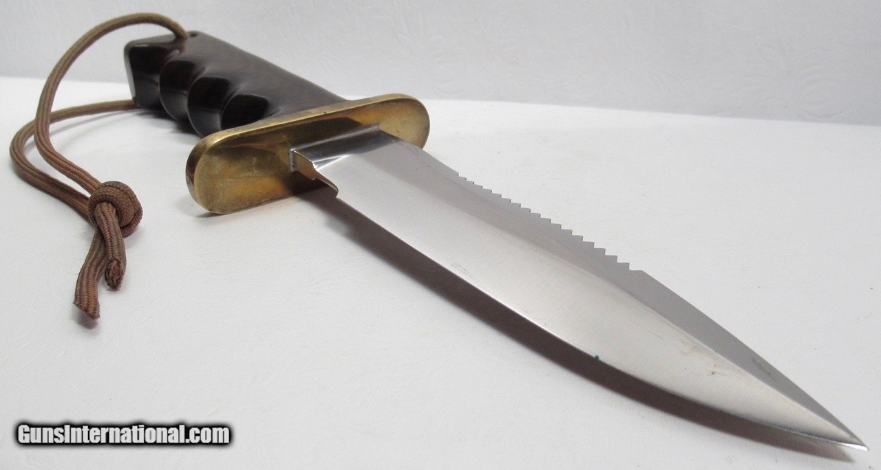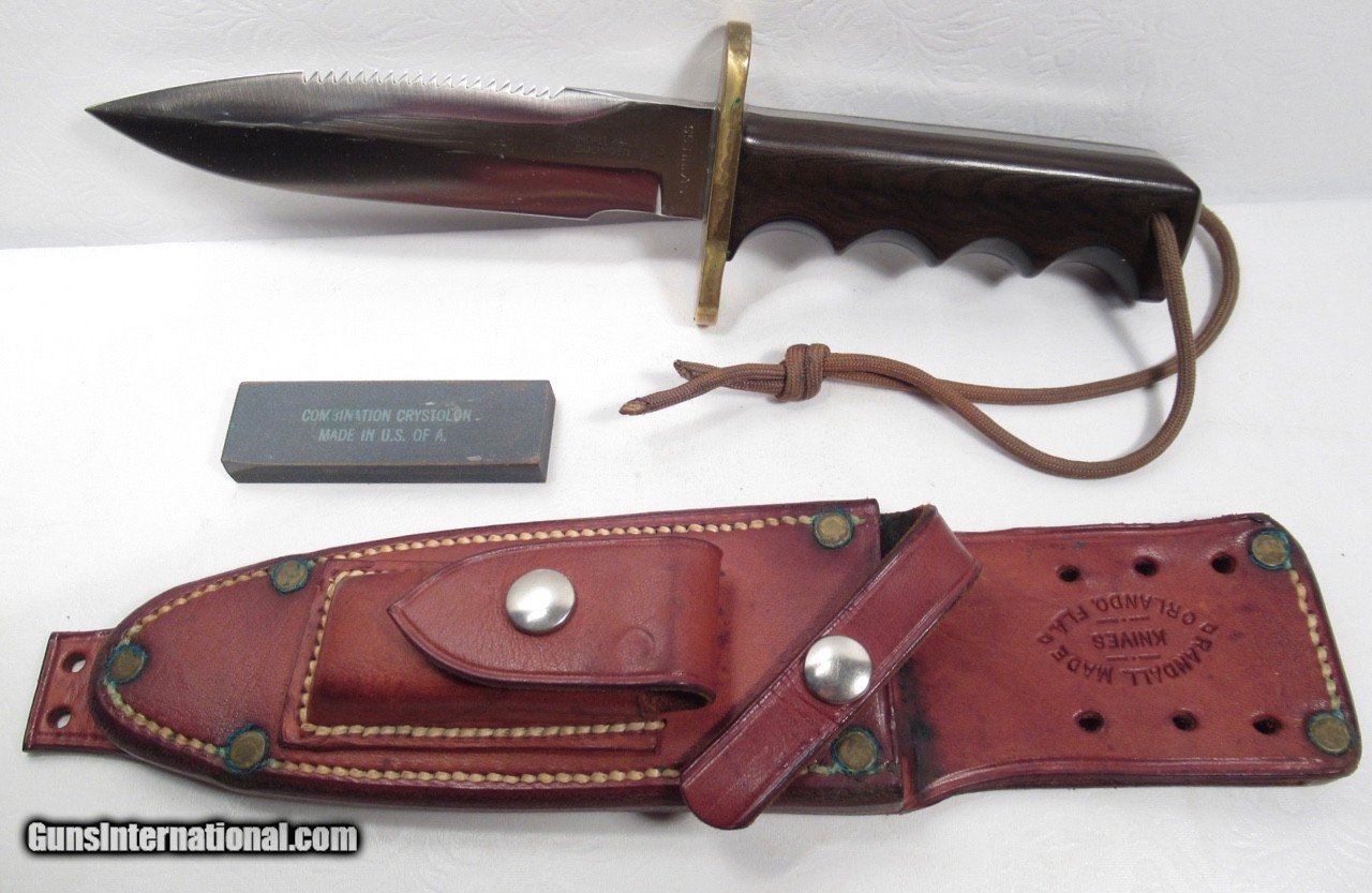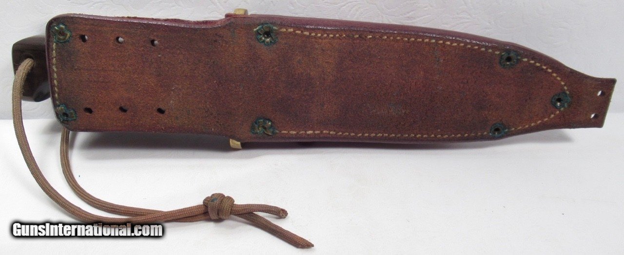 Description: SOLD!!! Randall Made Knife (RMK) Model No. 15 “Airman” Stainless Steel 5 5/8” Blade with Saw Back; Brown Micarta Handle; Original Sheath with Sharpening Stone; Excellent Condition for a 1960’s Vietnam Era Randall Knife; Price includes insured shipping; Attention Texas Buyers: We Must Collect 6.75% Sales Tax; SOLD |