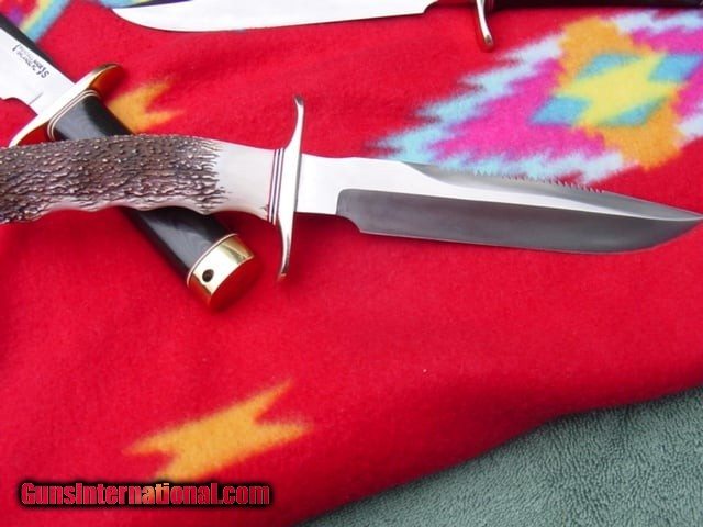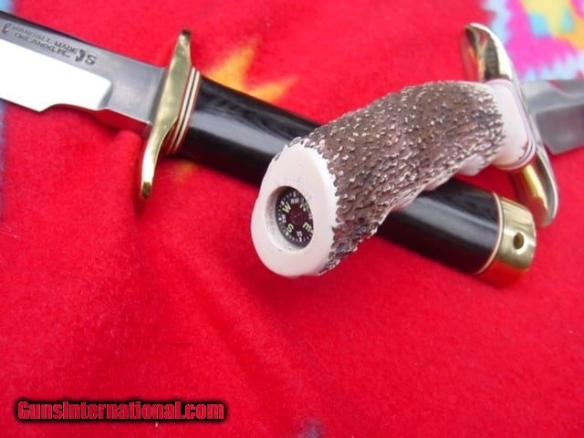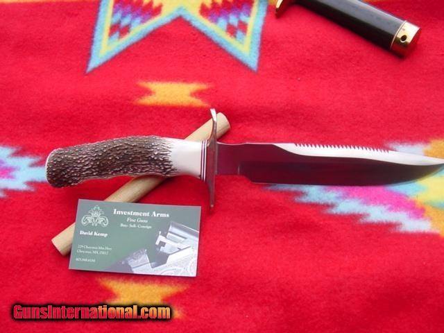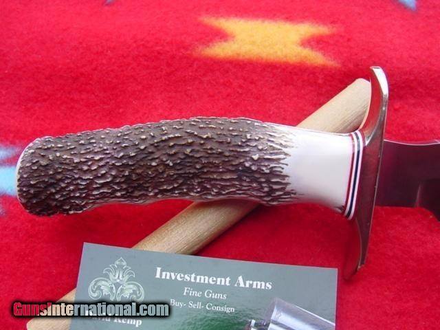 Description: Randall Model 1,Special Order, Fighting Knife-Saw tooth top edge, Nickel Sliver double hilt,finger grip Sambar Stag handal,has black faced compass as well in butt. A Super Nice Model 1 Special Order with lots of extra's in like new condition.,11 1/2” overall with a 6 7/8” stainless steel blade equipped with a 2” sharpened false, sawtooth top edge and smooth thumb rest. No Sheath Offered at $950.00 plus shipping-15 USPS Priority. Can be viewed purchase at Business Premise-located in New Hampshire Country Store on RT 16 Chocorua Please call-. for more info,can email pics as well, . We take bank check ,USPS Money order or Personal check-hold shipment a few days till clear. Price: $950.00 Contact Seller |