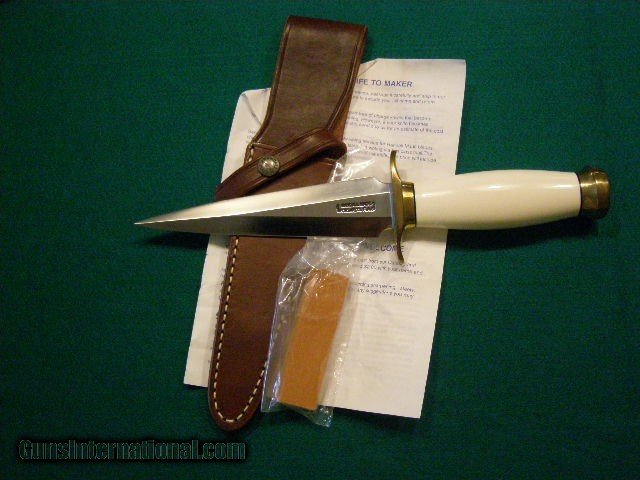 Description: Randall knife collection for sale. I have an assortment of Vintage and newer Randall knives from Vintage to brand new condition. Some of theses knives are ealry 1960s Vietnam era knives in very nice condition. I am looking to sell all of them at one time or i will separate the collection if you find one you are interested in. # 14 with JRB Split Back sheath, #14 with JRB smooth button, #14 with loaded with extras curly maple handle, aluminum spacers, NS hilt brand new. #16 Low S marked very nice knife. #15 Airman 1960s with Black Micarta, #15 Airman with single guard and Lignum Vitae wood handle brand new, #s &, 8, and 13 with Ivory handles brand new, I also have a Gerber mark II Orange handle 1974, Gerber Command 1 with orange handle in very nice condition, and a Randall large custom bowie with ivory handle. you can email me with any questions that you may have. SOLD |