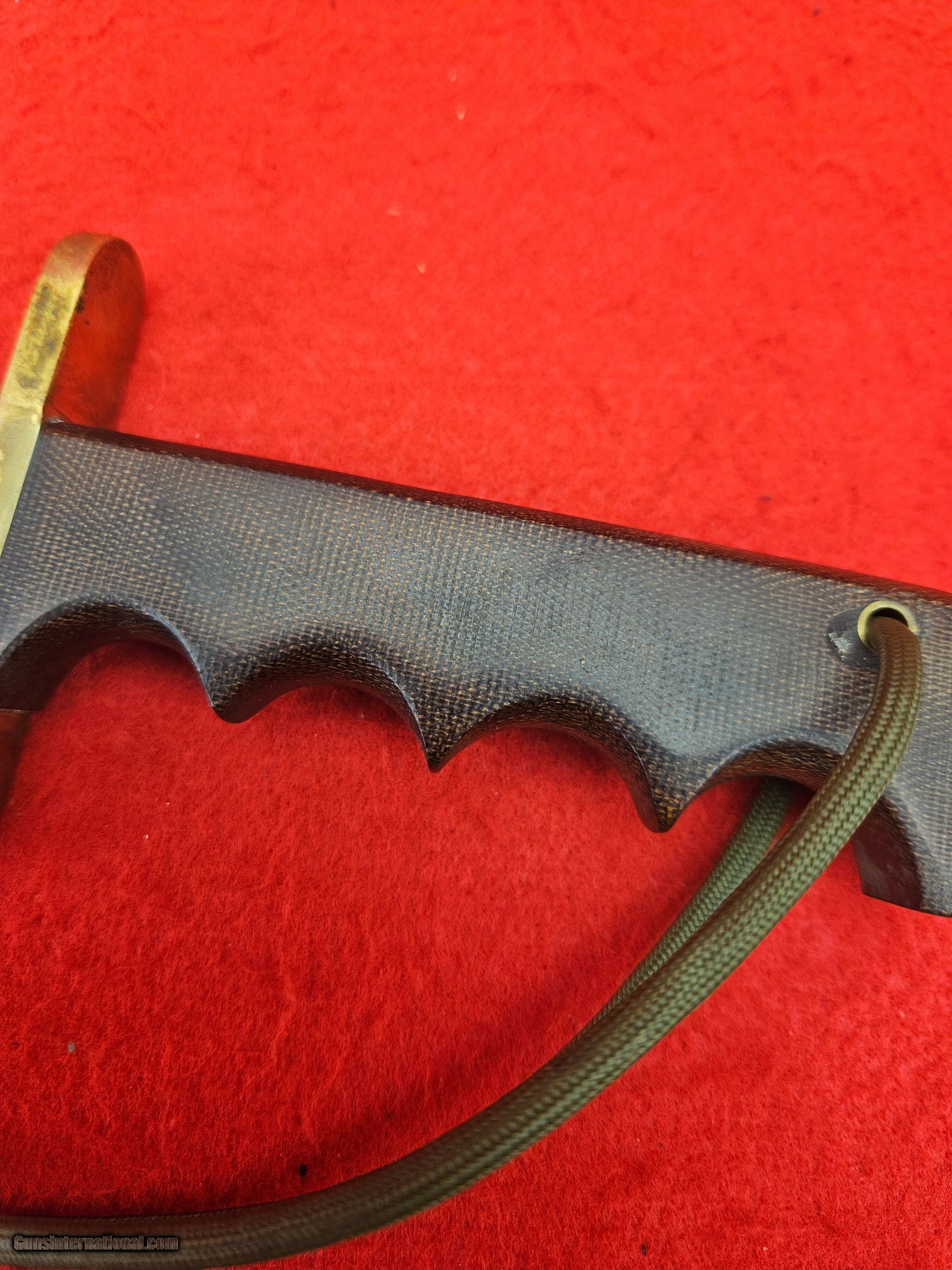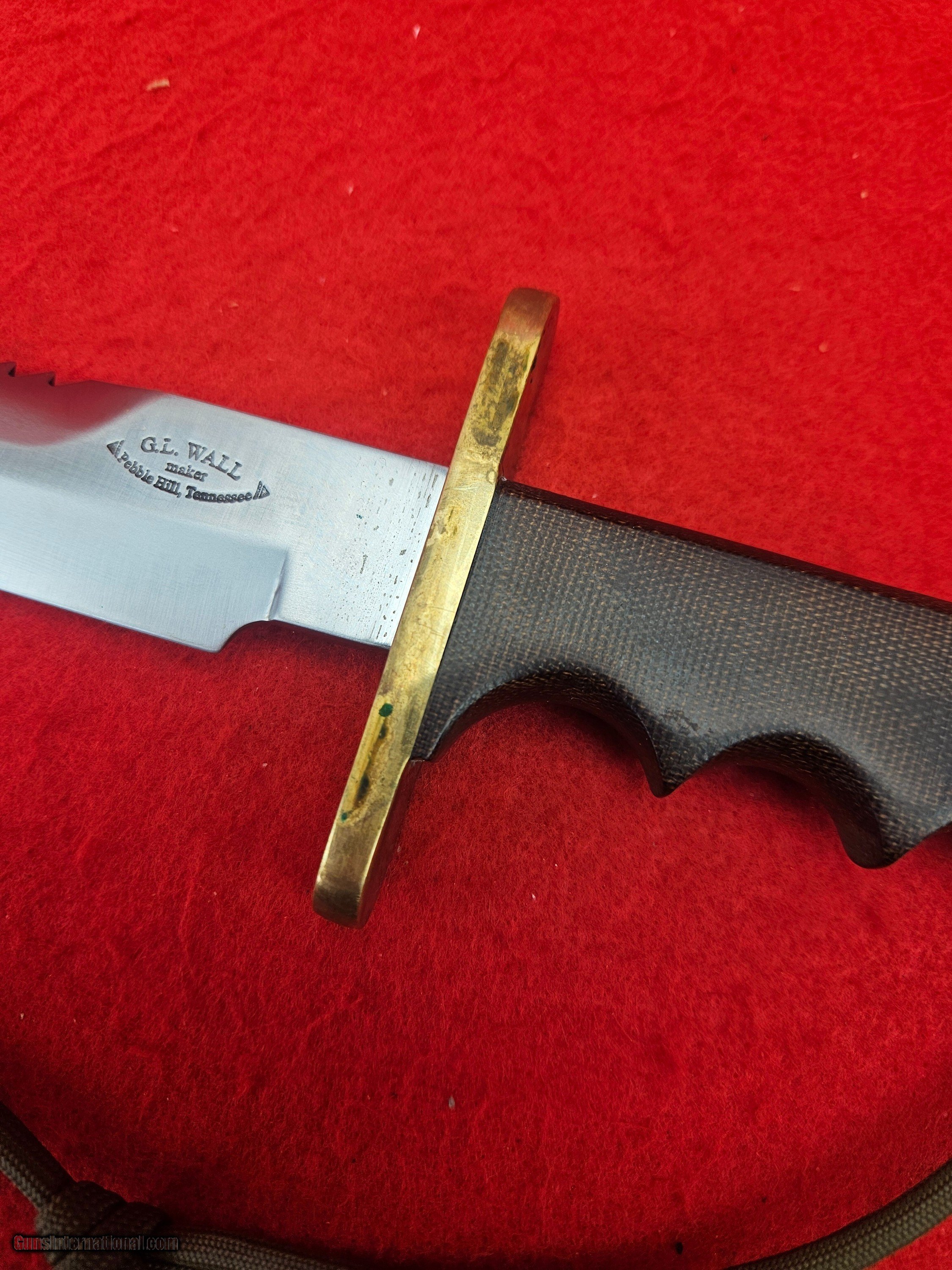 Description: For Your Consideration, Here is an excellent example of an early Greg Wall (Tennessee Knifemaker) Model #15 Airmen. This is Greg's take on the popular Randall Made Model of the same name. Micarta grip, Sawtooth grind. Blade is 5.5" long. Original C-Style sheath and stone. Made in the 1990's. Some mild storage wear. Price - $420 + $20 Shipping Fully Insured Price: $420.00 Shipping: $20.00 Buy Now Contact Seller |