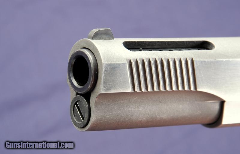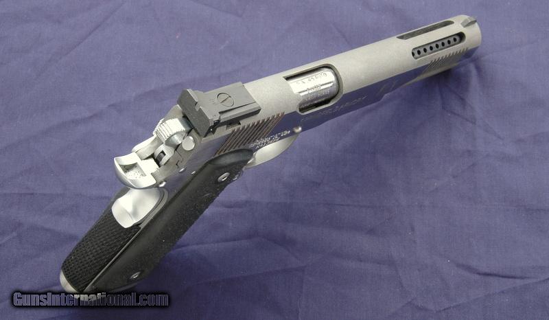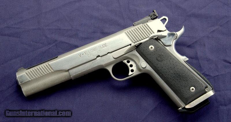 Description: Springfield Armory 1911 Long Slide V-16. This pistol features a 6” non- bushing barrel, full length guide rod, 16 ports on barrel, slotted slide for the ports, extended slide release, extended thumb safety, skeleton hammer, beveled mag well and Bomar style adjustable rear sight. This pistol is in good condition with only some light scratches that can be removed. SOLD |