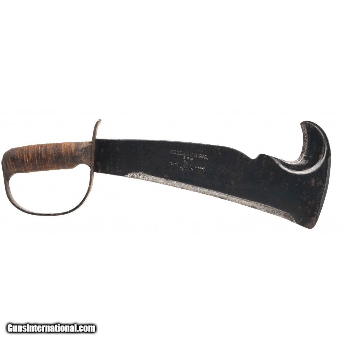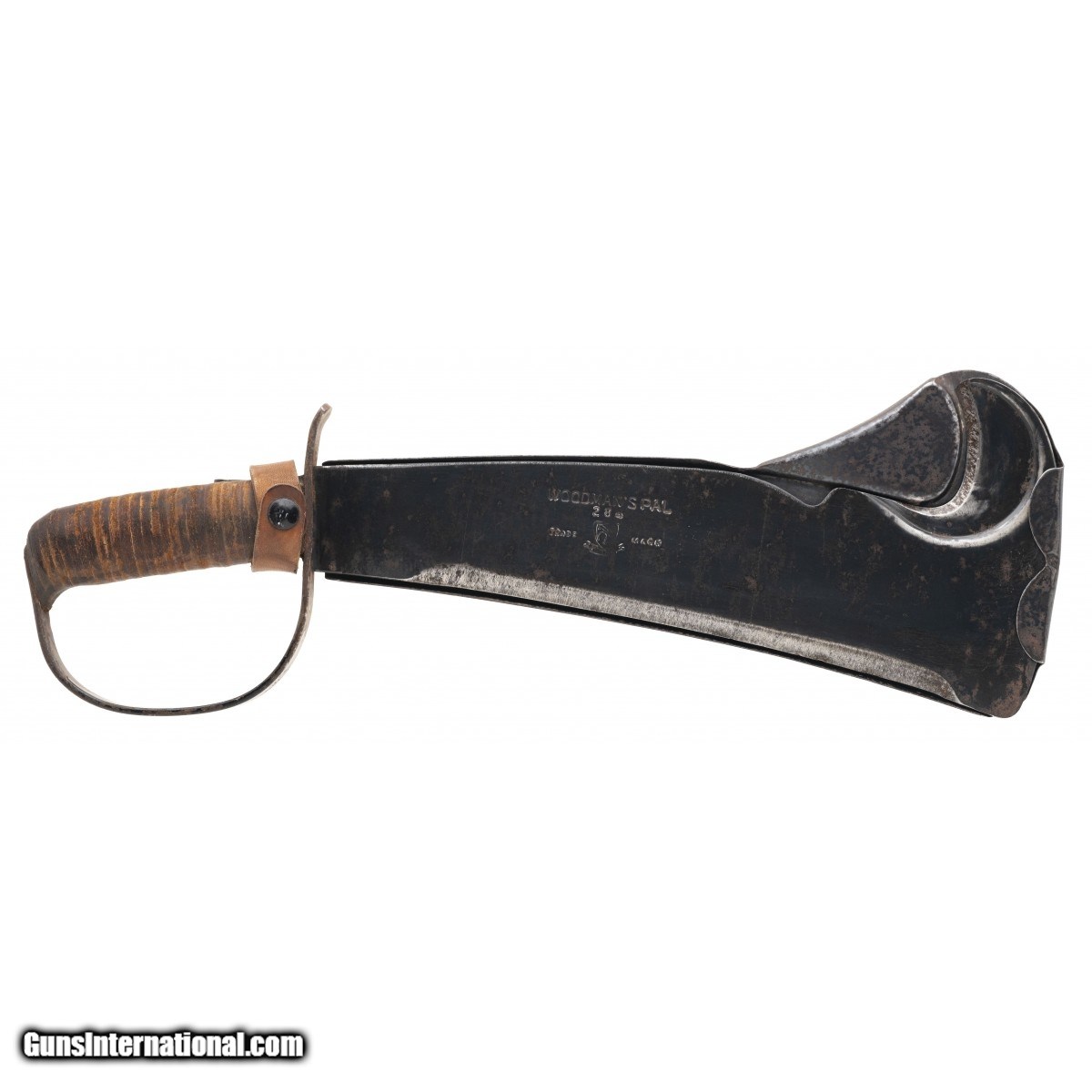 Description: " WWII Woodman's Pal 284 Victor Tool Machete. Comes with metal sheath and brown Handle. Overall condition is very good. SOLD |