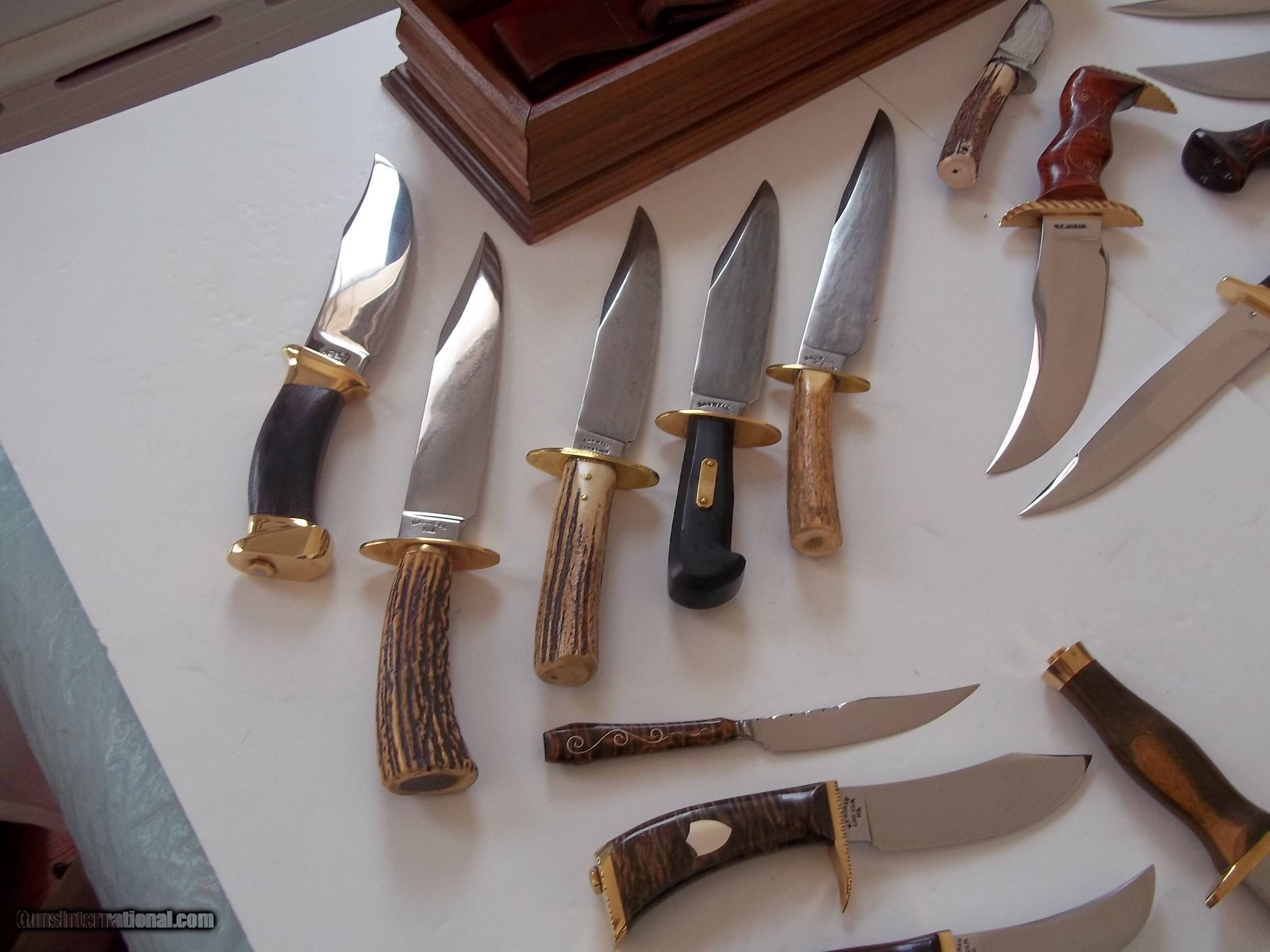 Description: The very best custom knife collection out there in moderrn times ever assembled. I ask you "Is there any better"? You want the best, I have the best.: The collection included knives by Bill Moran, Jean Tanazacq, Randall Made Knives, Bill Hurt, Glen Marshall, Bill Bagwell, Marbles, Moran-Ken Warner Blackjack.... All mint. No dealers applies please. No "deal" no "package deal", no "discount" will be offered to anyone. One takes them all. (forty-two knives) Free shipping in the US only. Some knives are listed separately, if a sale were to be made, I will have to cancell this listing. SOLD |