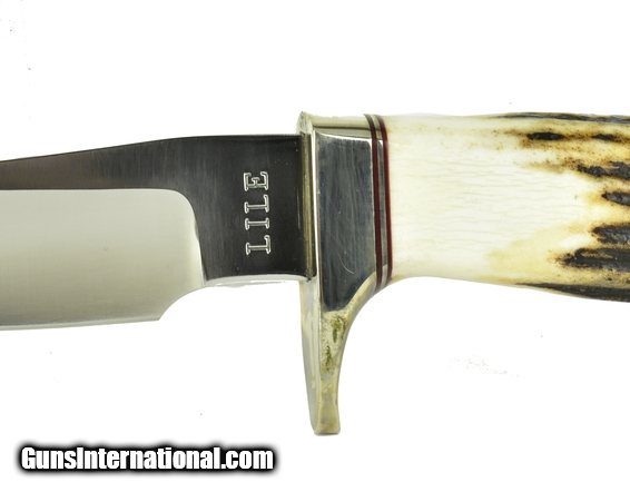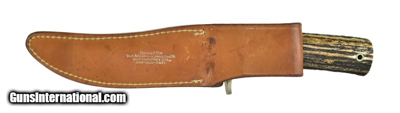 Description: "Jimmy Lile Model 3-5. This is a Model 3 with a 5" blade made by legendary knifemaker Jimmy Lile. This knife is in excellent condition. This is a “no dot" knife meaning it was made 1976-1991 when Jimmy Lile was still alive. Sheath is excellent. SOLD |