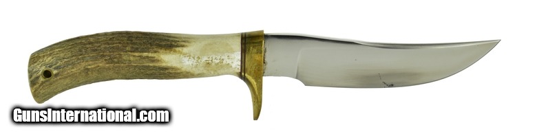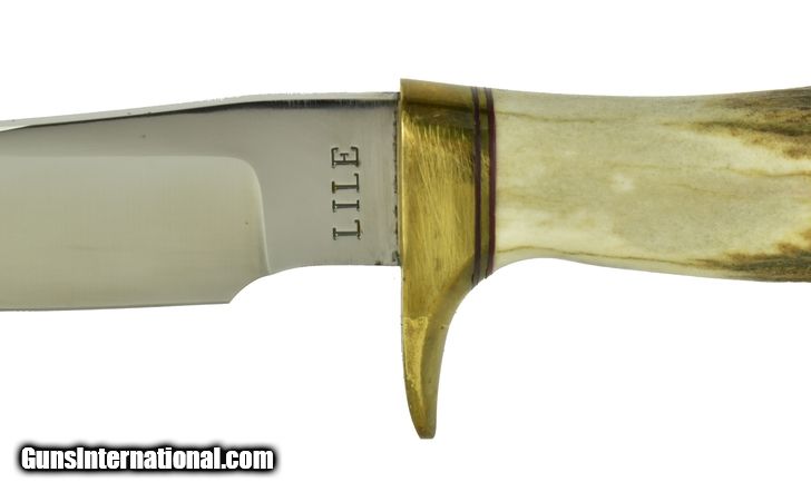 Description: "Jimmy Lile No. 3-5. This is a Model 3 knife with a 5" blade made by legendary knifemaker Jimmy Lile. This is a “no dot" knife meaning it was made between 1976-1991, when Jimmy Lile was still alive. This knife is in excellent condition with one spot of corrosion on the right hand side of the blade. Brass has been slightly cleaned. Sheath is in excellent condition, but not to this knife. This sheath is for a 6" blade instead of a 5". SOLD |
