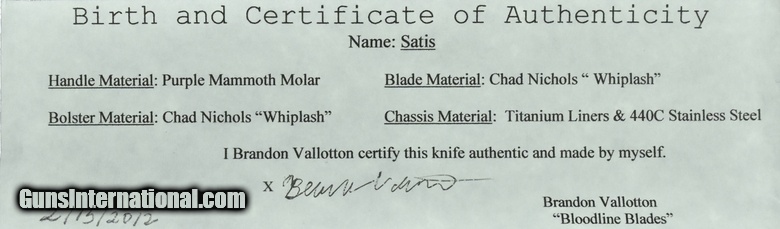 Description: " Rainy Vallotton “Satis” Custom Auto Knife. With case and certificate. SOLD |