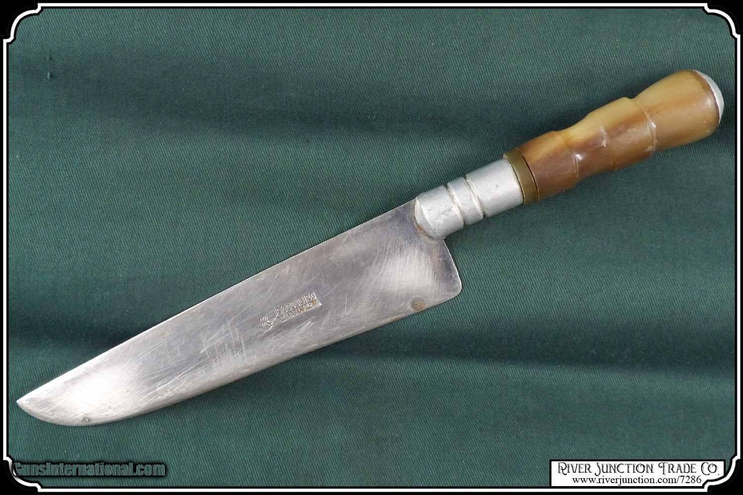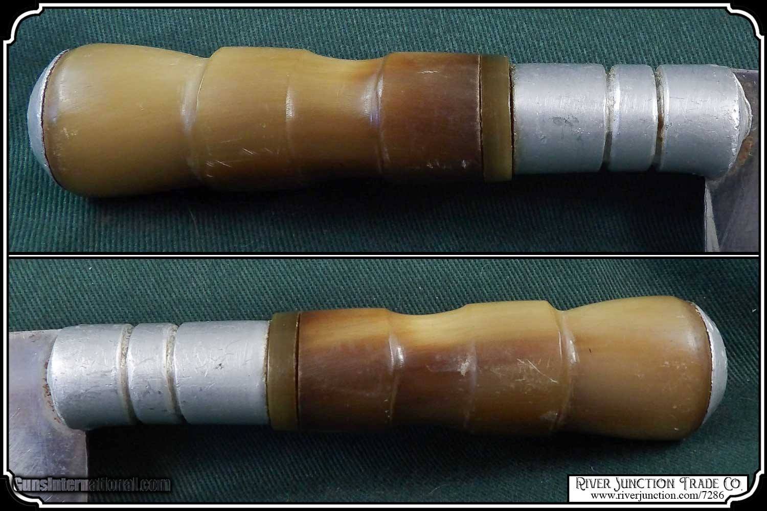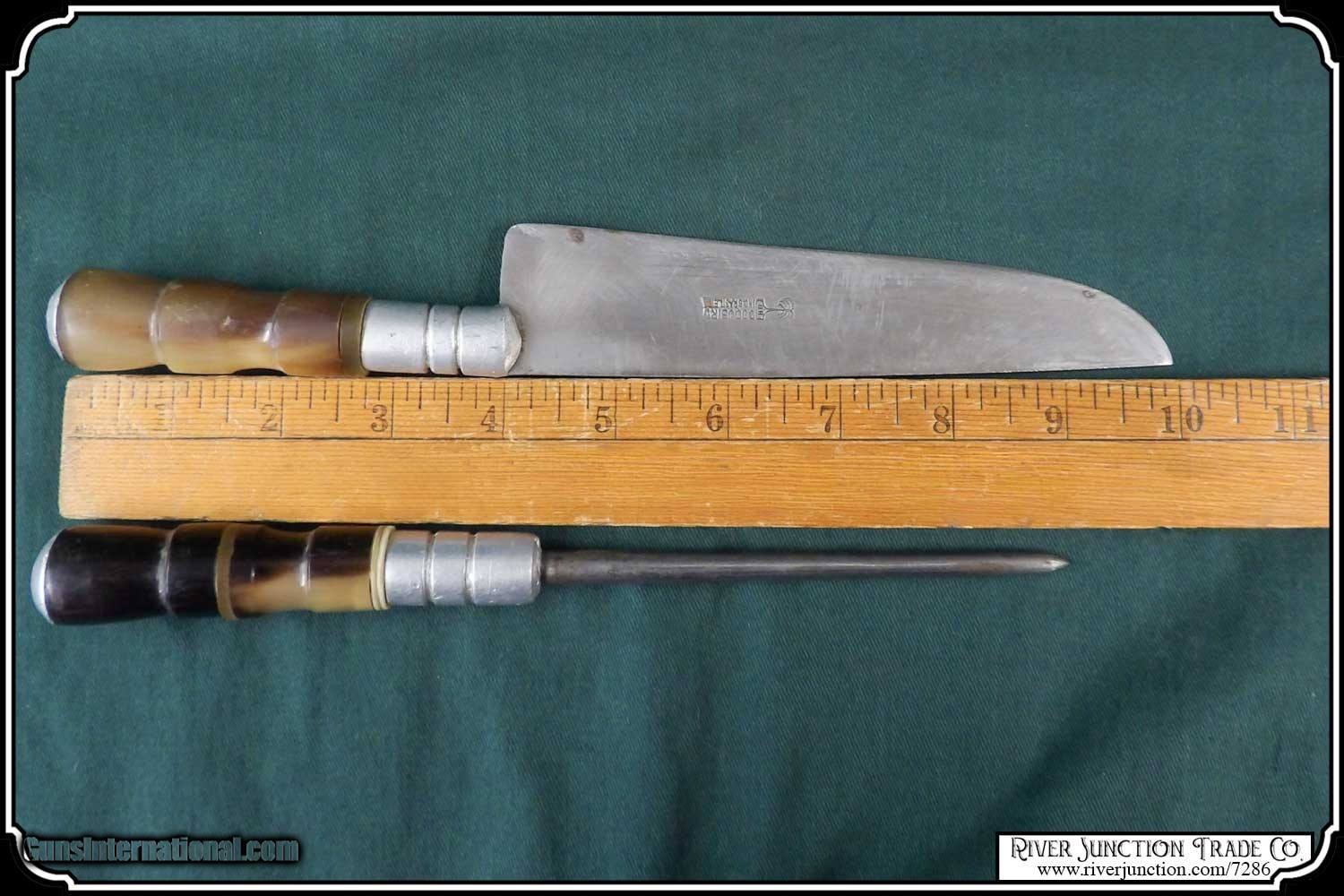 Description: The Gauchos rode the frontier outback of Brazil, Uruguay, Paraguay and most especially the Argentine pampas. In Argentina, the Gaucho is an even more potent cultural symbol than the American cowboy of the USA. They ride still. A rich history there, other than Butch and Sundance holing up there until their luck ran out in Bolivia. This Handcrafted 2Pcs Gaucho Knife and Sharpening Steel with a 6" blade knife and one 5" Sharpening Steel in a leather sheath. It will be a wonderful addition to your collection of Cowboy Regalia . This Gaucho style set is handmade in Brazil. Features a polished Steel blade, with horn handles, Leather Sheath, and Sharpening Steel made in Brazil Price: $169.95 Buy Now Contact Seller |