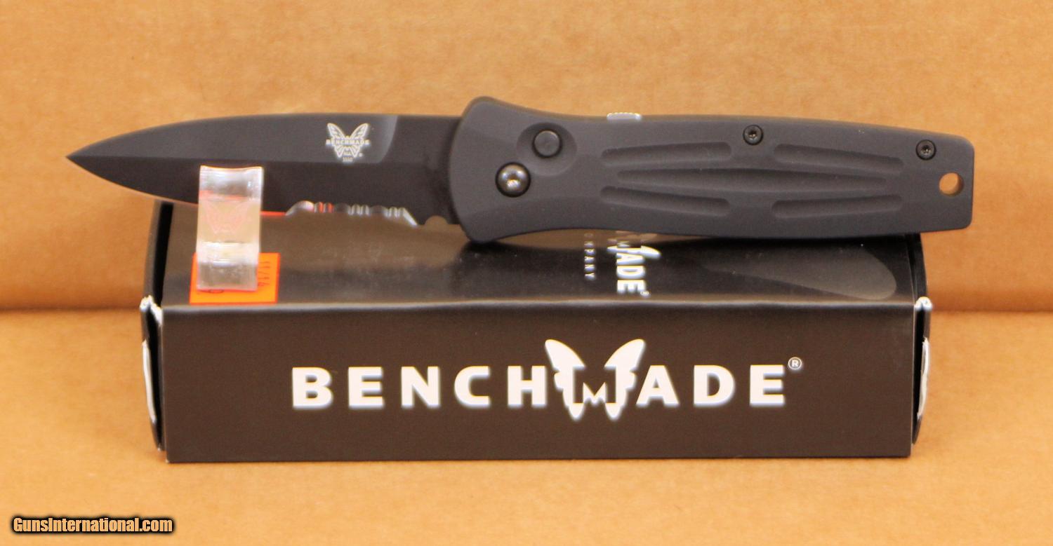 The spearpoint blade shape of this small auto offers enhanced tip qualities. Push-button automatic with integrated safety 154CM stainless steel spear-point blade (58-61HRC) Black anodized, machined 6061 T-6 aluminum handle with tip-down pocket clip Blade Length: 2.98" Blade Thickness: 0.090" Handle Thickness: 0.470" Blade Material: 154CM Stainless Steel Blade Hardness: 58-61HRC Blade Style: Spear-Point Weight: 2.80oz. Pocket Clip: Black, Removable, Tip-Down Lock Mechanism: Auto Open w/ Safety Overall Length: 7.10" Closed Length: 4.10" Sheath Material: Sold Separately Class: Black ComboEdge/ BK Coated Blade