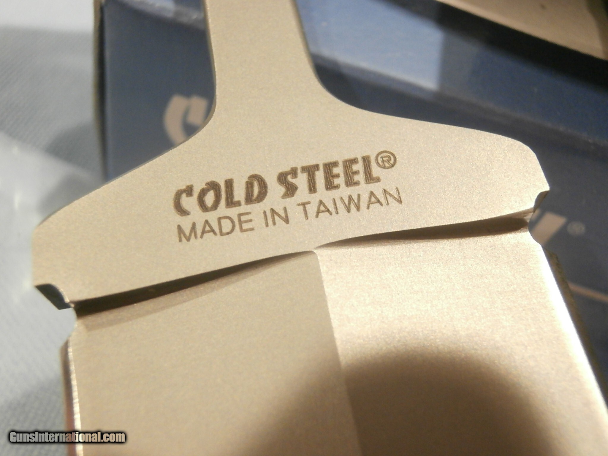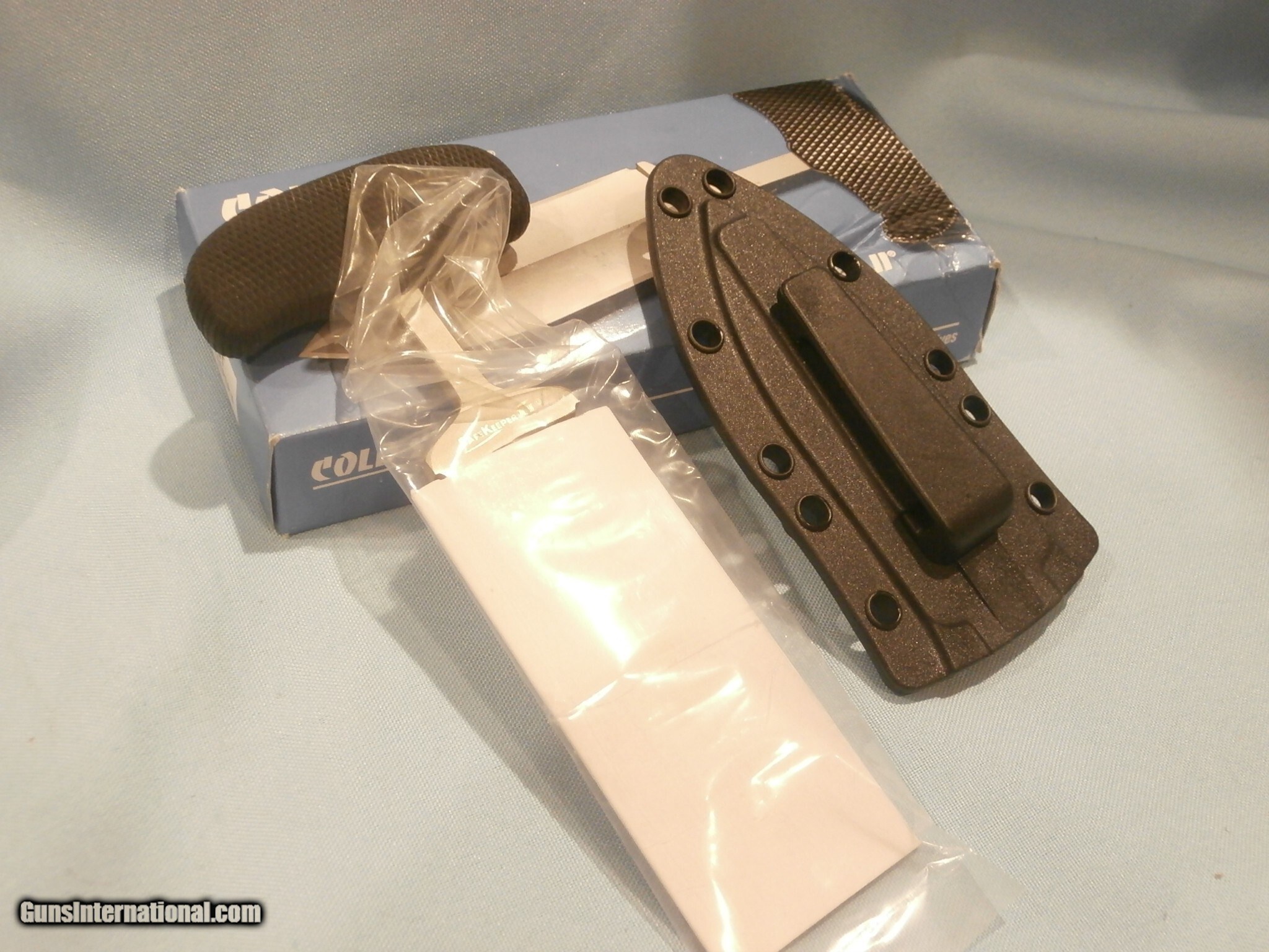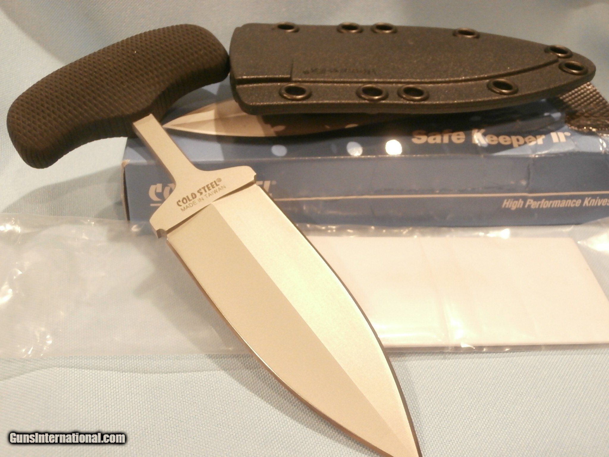 Description: COLD STEEL SAFE KEEPER #12BT PUSH DAGGER SCARCE COLLECTIBLE DAGGER!! 3.75" DAGGER BLADE...SEE PICS. BLADE OF JAPANESE AUS 8A STAINLESS STEEL...SEE PICS. OVERALL LENGTH 6 3/8"...SEE PICS. BLACK KRATON HANDLE/GRIP...SEE PICS. SECURE-EX SHEATH WITH VERTICAL CARRY CLIP...SEE PICS. BRAND NEW IN FACTORY BOX!!...SEE PICS. Note: The box was lightly damaged in original shipping, with NO DAMAGE TO THE KNIFE OR SHEATH!...SEE PICS. ORIGINAL OWNER!! NEVER USED!! NEVER CARRIED!! THIS KNIFE HAS NEVER BEEN PLACED INTO THE SHEATH!!...SEE ALL PICS. Price: $129.99 Contact Seller |