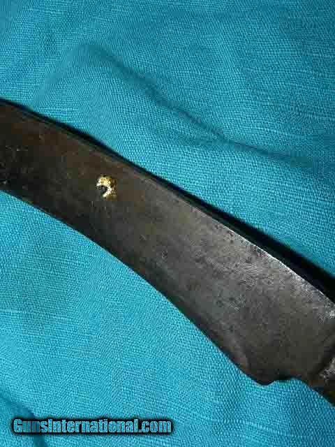 Description: A knife with much wear and use brought home after WWII from Middle East. Total length is almost 14", and has a hammer forged curved blade of 9 1/2" long. The handles are held by two iron rivets through horn material, and the blade has an indented makers mark in gold. Plenty sharp.The widest selection of older guns at great prices, We don’t have a store, and sell on the internet only. We don’t have asite. OUR DESCRIPTIONS ARE ACCURATE.THREE DAY INSPECTION ON ALL PURCHASES SOLD |