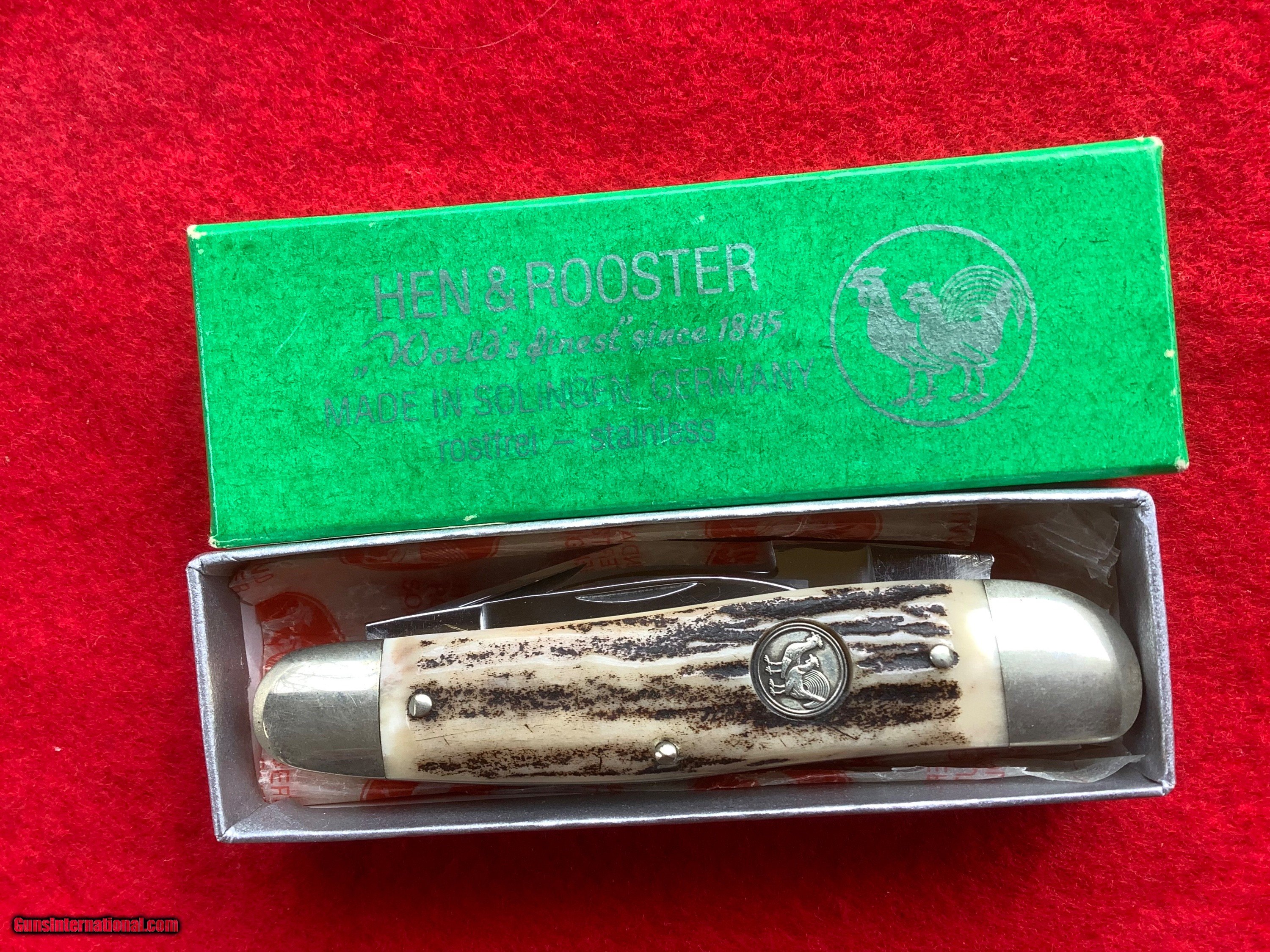 Description: Beautiful stag handled Whittier by Hen Rooster in box, never sharpened or carried. Feels great in hand. Shipping 5. SOLD |