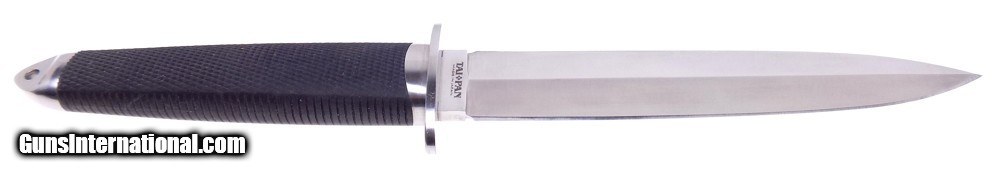 Description: Another “Hard to Find” offering by Dust 2 Dollars. We offer you a RARE Japan manufactured COLD STEEL # 13D Tai Pan Stiletto Fighting Knife with Sheath. The overall length is 13" with a blade length of 7 1/2". This knife is just one of a large number of Custom and Quality knives we will be listing from a large collection. All of these knives are new but the boxes were not found for any of them. The knife is all original and the blade has not been touched. It has not been carried and was just put away after it was purchased new. $375 plus $20 shipping for USPS Priority Mail insured to you. The total price is $395 for payments made by USPS money orders or Cashier’s Check. $407 for payment made through PayPal that includes signature required for delivery. SOLD |