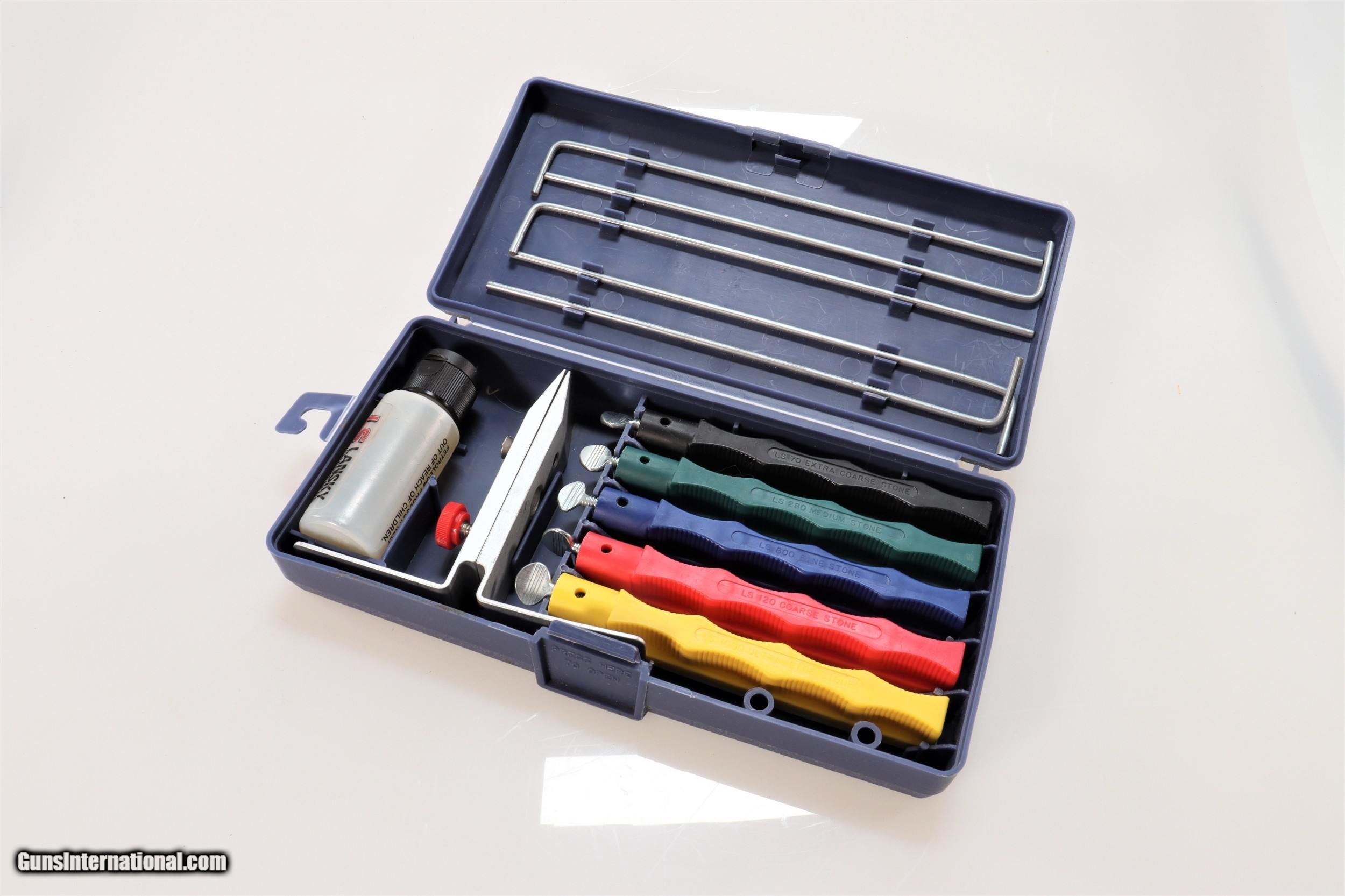 Description: Lansky standard precision knife sharpening set. Deluxe set with five stones, precision angle sharpening tools, and premium sharpening oil. About 1/2 of oil has been used. Set is in great condition. Great for the knife collector, hunter, camper, or survivalist. Size: Box 8 1/2"L x 4 1/4"W Inventory: AG2196_SK Cisco’s Gallery deals in the rare, exceptional, and one-of-a-kind pieces that define the history of America and the Old West. Our pieces range from American Indian to Cowboy Western and include original items of everyday life, commerce, art, and warfare that tamed America’s frontier. Our 14,000 square foot gallery opened in 1996 in beautiful Coeur d’Alene, Idaho. Personal Service Cisco’s operates on old fashioned values – honesty and integrity, and all of our items are backed by our money back guarantee. We appreciate the opportunity to earn your business. Whether you desire assistance with a jewelry purchase, choosing a gift, identification, or even selling – we hope to be your trusted source. SOLD |