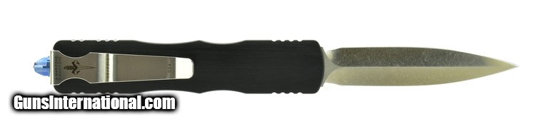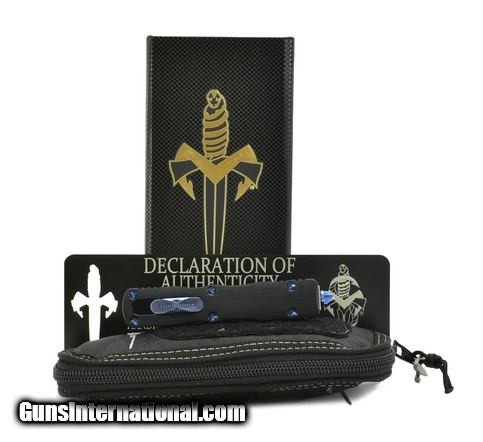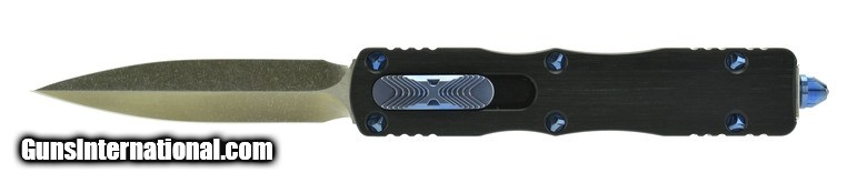 Description: Marfione Custom Dirac. Double edge two-tone stonewash blade with anodized hefted alloy handle. Blue titanium hardware.