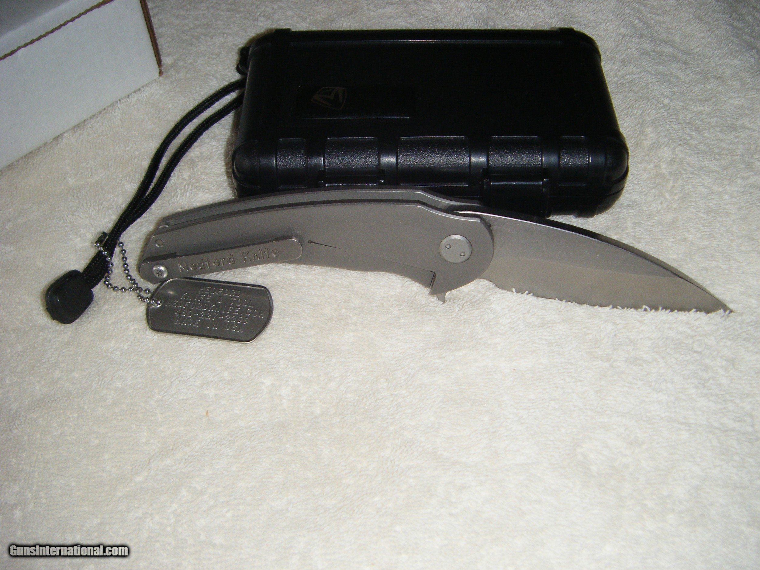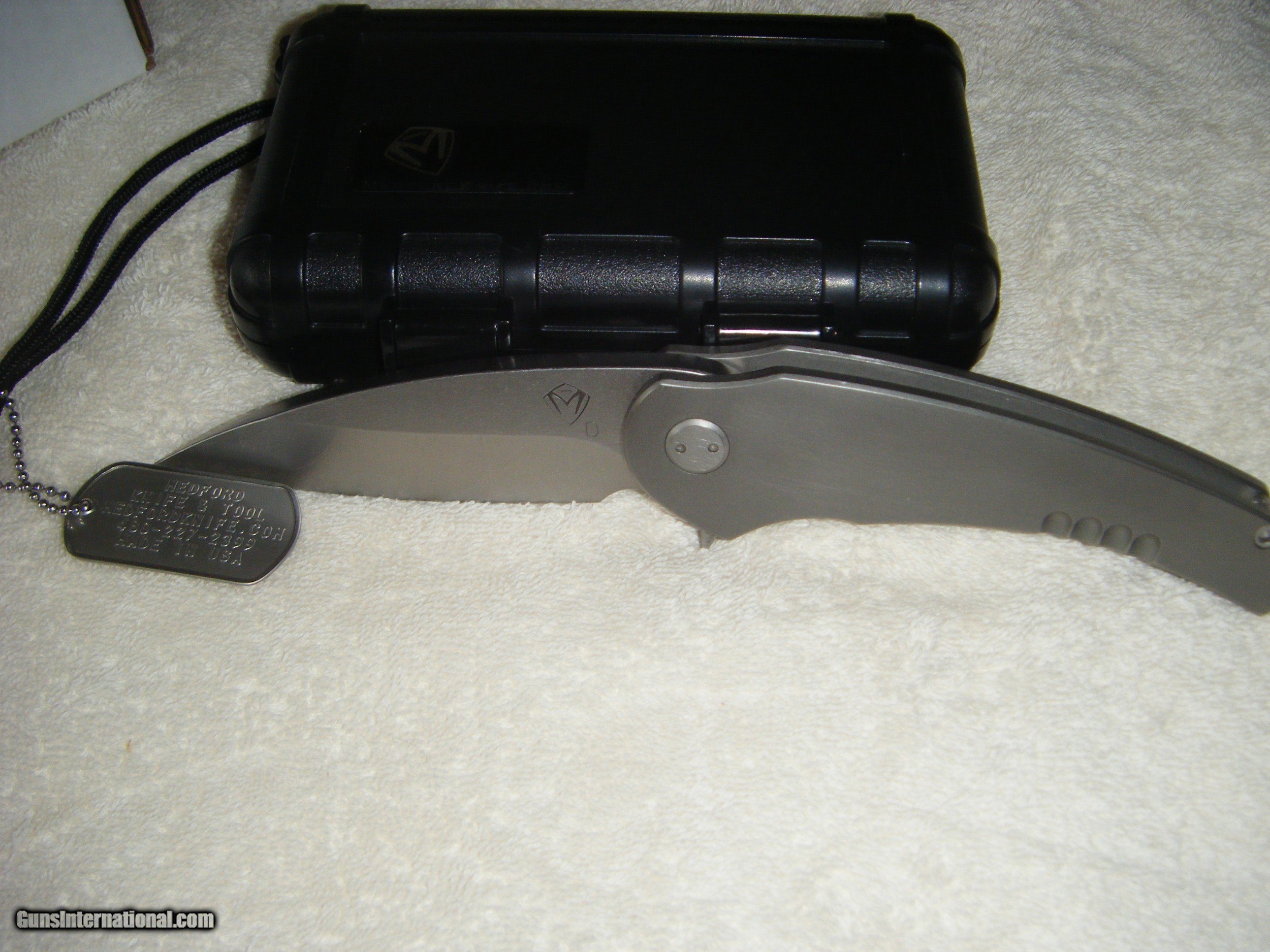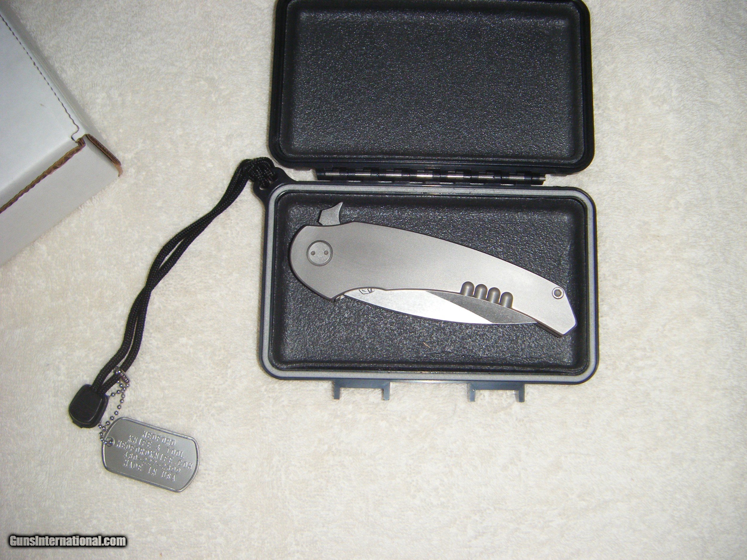 For sale is this MKT Viper, a flipper that has been discontinued for a few years now. It has been used but is in "like new" condition and comes with original box and original plastic case, dog tags, and all paperwork that came with it when it was new. These only rarely come up for sale any more but here's a chance to own one. This particular knife has the D2 tumbled blade and bead blasted handles. As mentioned it has been carried and used but is still in excellent condition, and comes with everything that came with it from the factory, as you'll note in the pictures. Price is $750, updated with reduction in price to $600, plus the cost of shipping, within the U.S. only.