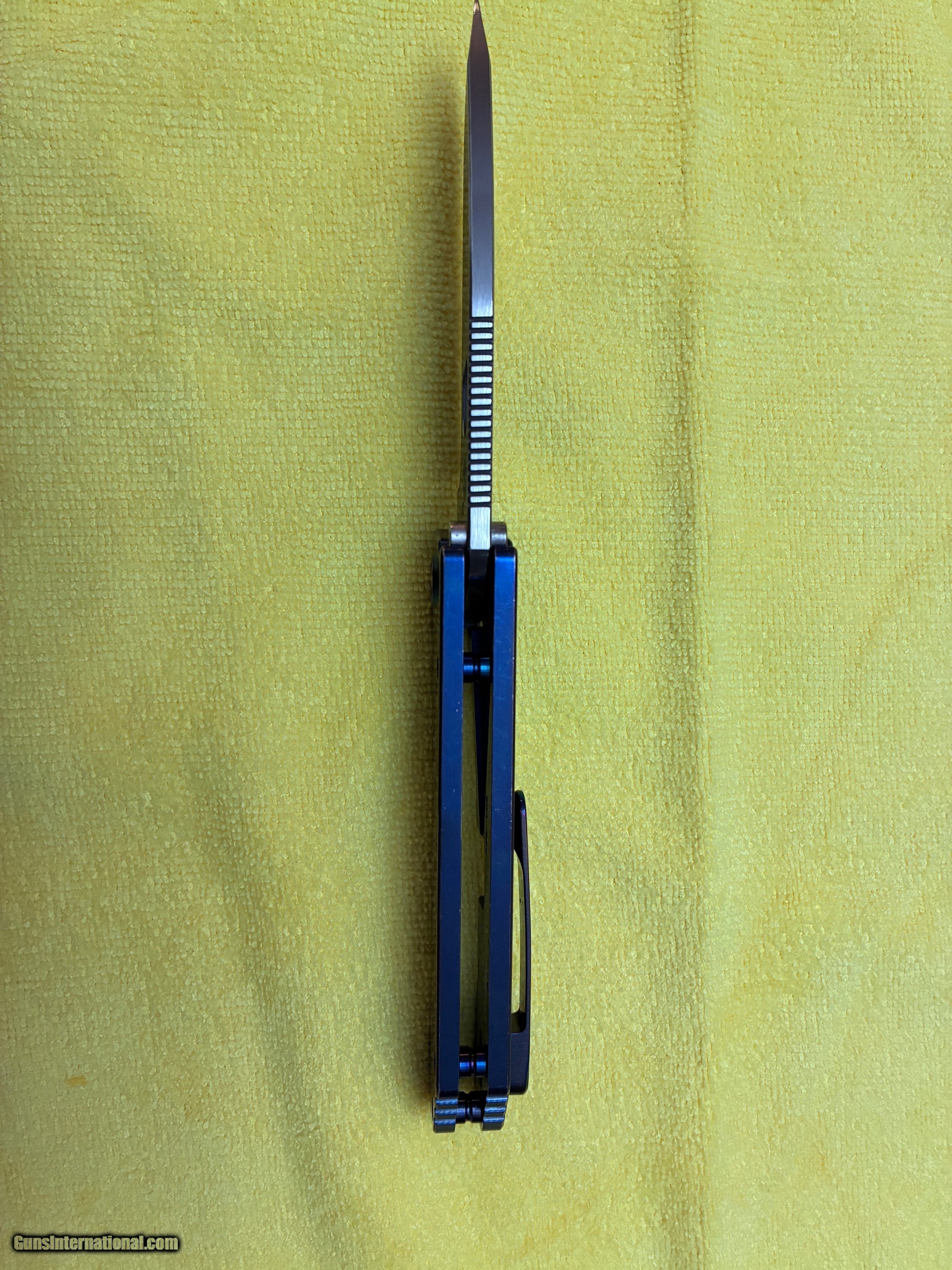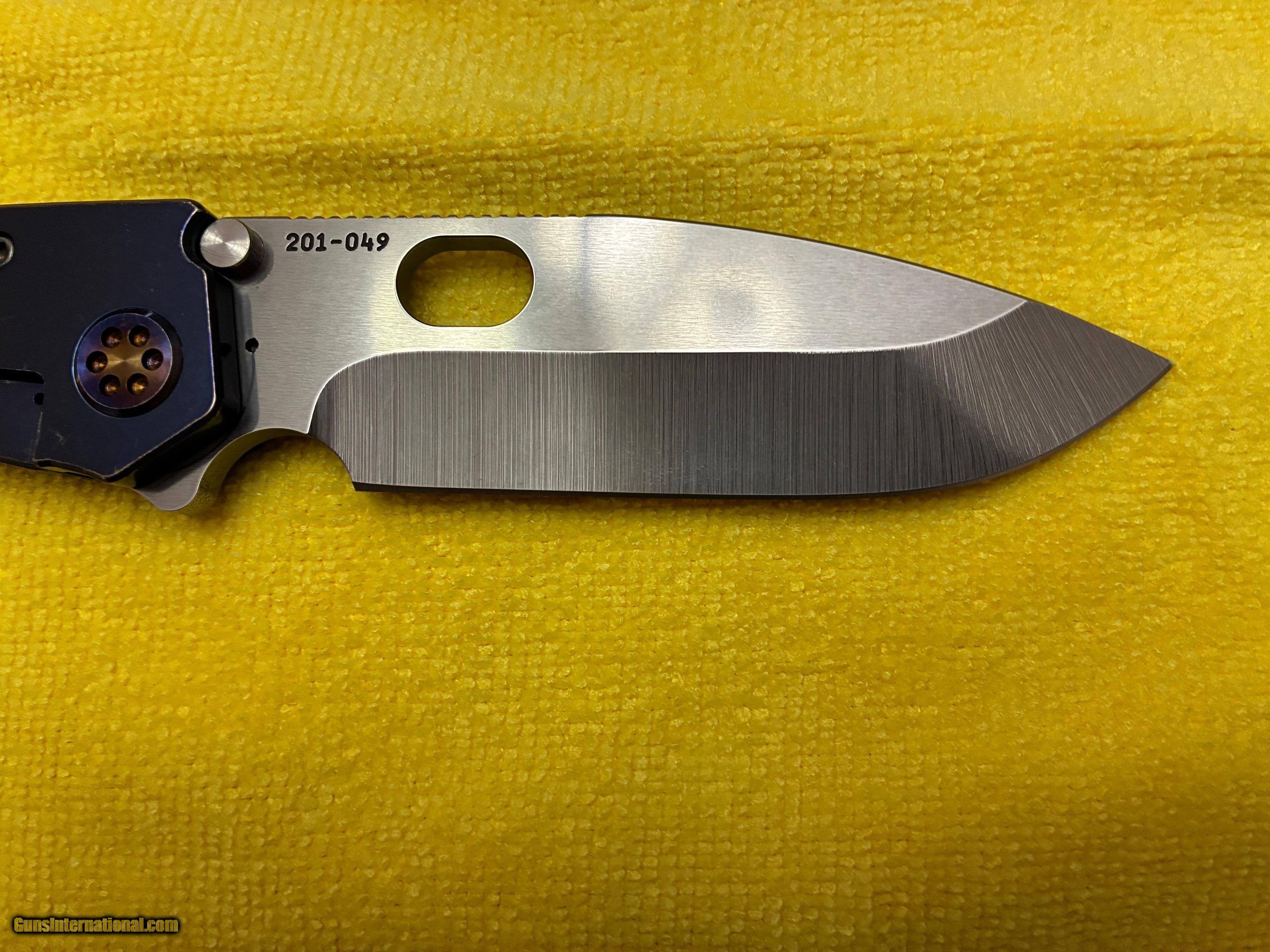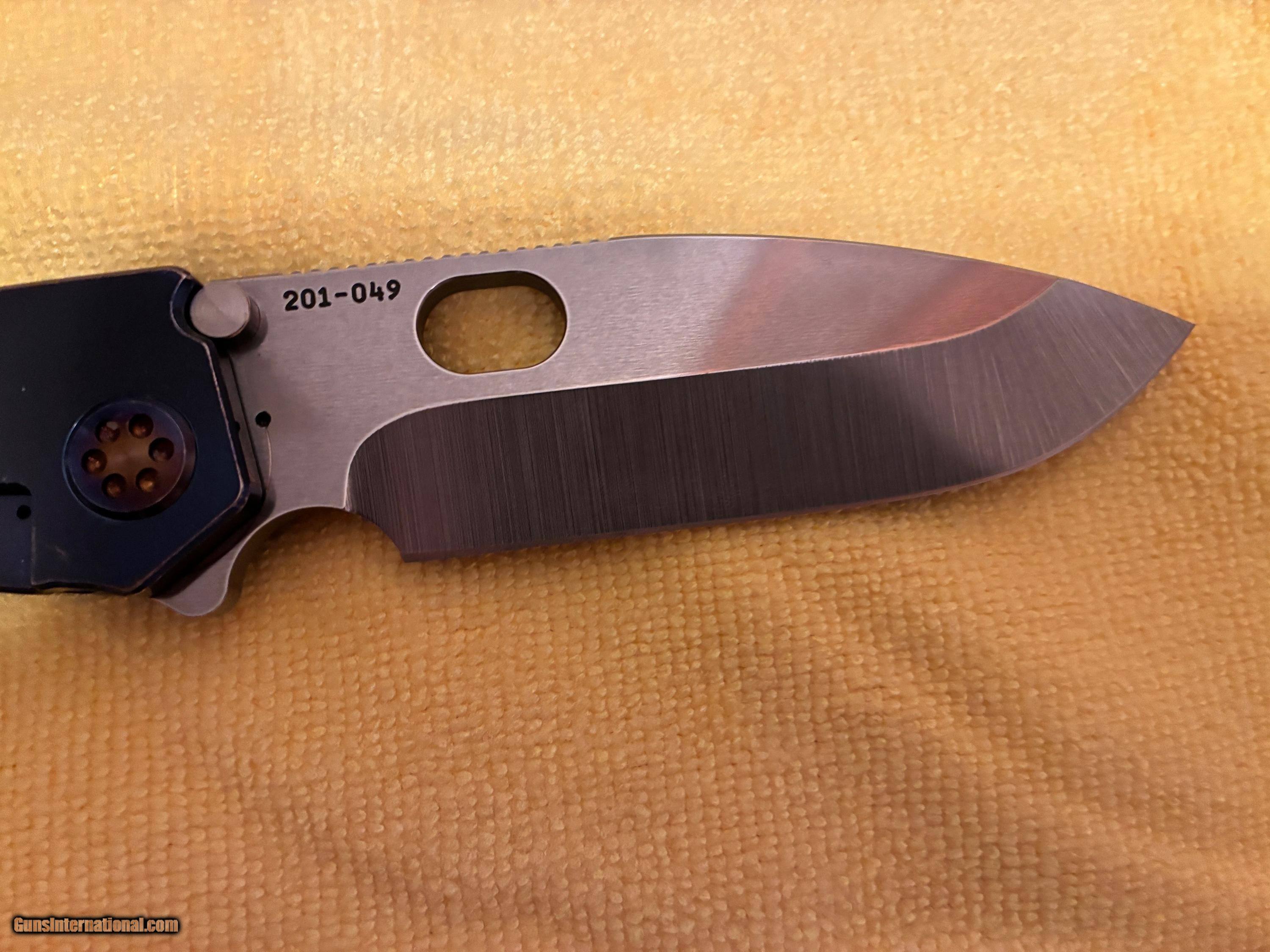 This knife was shipped may of 22 from factory. Steel - s35zn 201-049 flame hardware & clip titanium.Was shipped to BLT traders. 2022 cost was $650. Knife has some handling marks but otherwise unused blade.