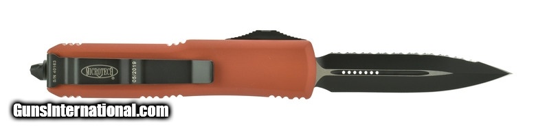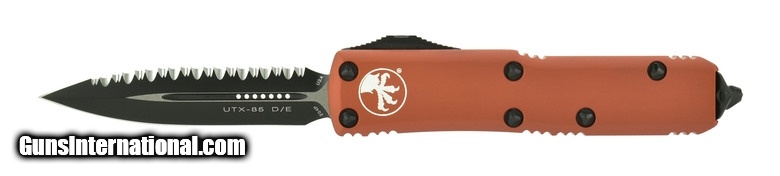 Microtech UTX-85 Double Edge Orange Full Serrated Automatic.