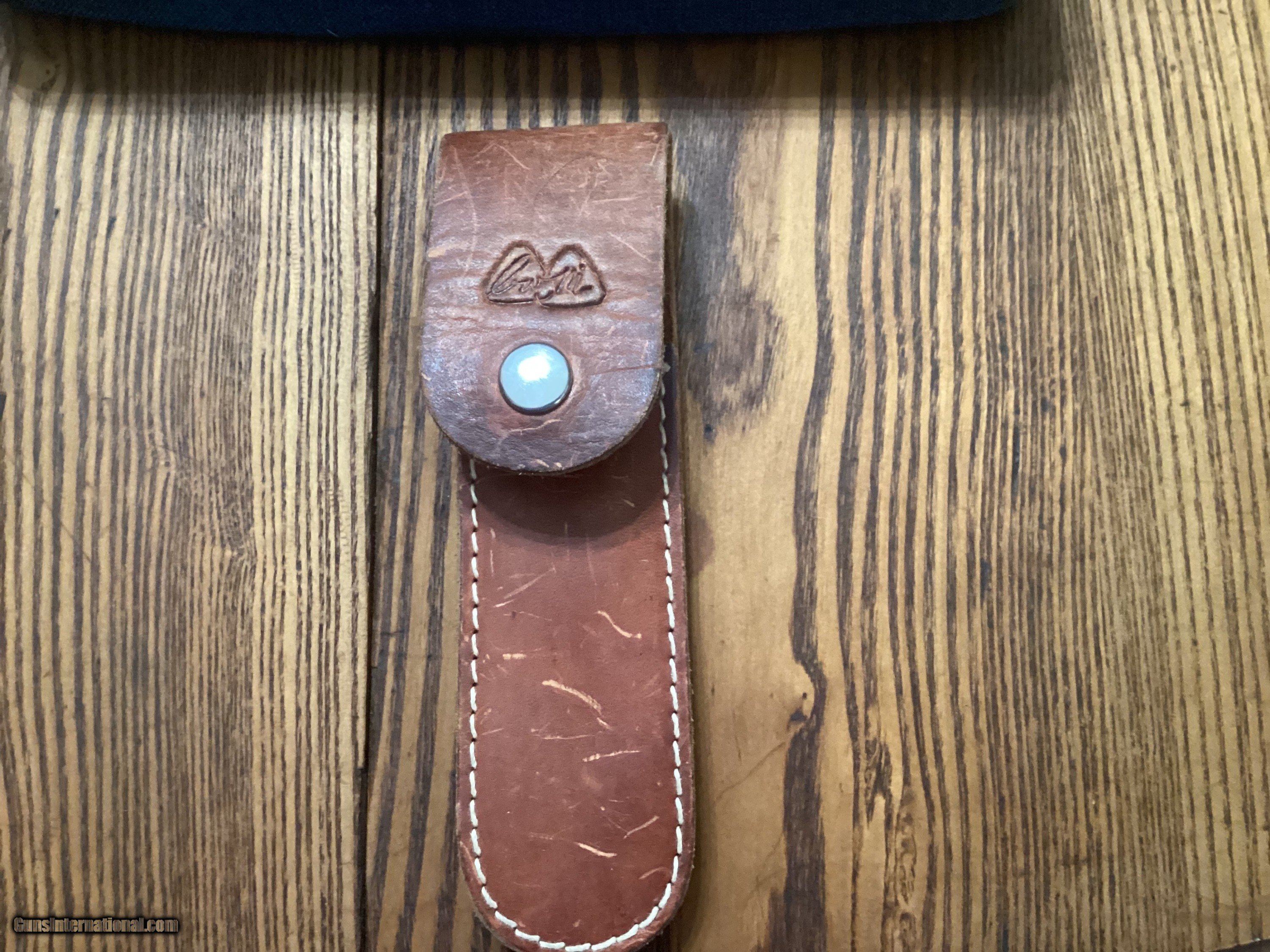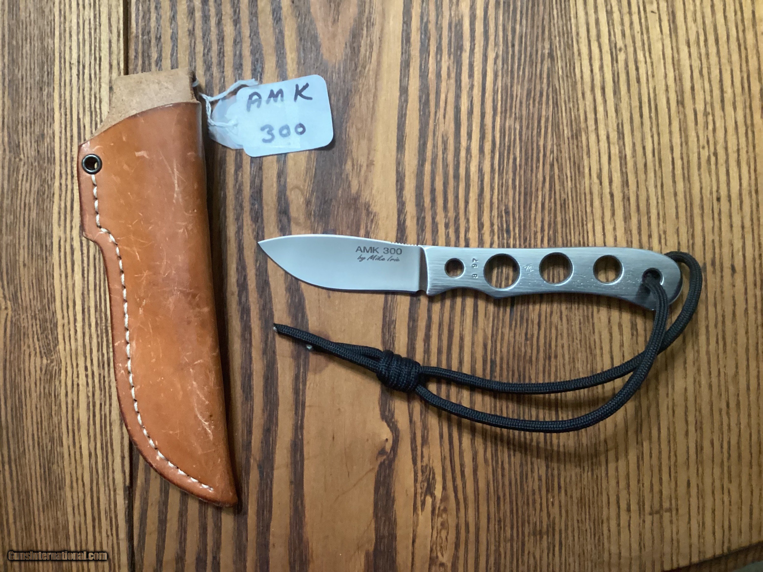 Made in 8/97 from ATS34 3/16" SS. 2 5/8" blade,6 1/2" overall. Has been carried but never used. Came with large sheath. I did not care for that sheath so called I called Mike and he made me the smaller one. I only accept USPS Postal M/O’s. Shipping cost is to CONUS only, Alaska and Hawaii may be more. If full shipping insurance is wanted that will be additional cost. Have a lot of knives from my collection for sale, most are new unused, a few lightly used and will be identified as such. Feel free to contact me on any questions. I will be happy to consider offers. Thank you for looking, please see my others s, good luck.