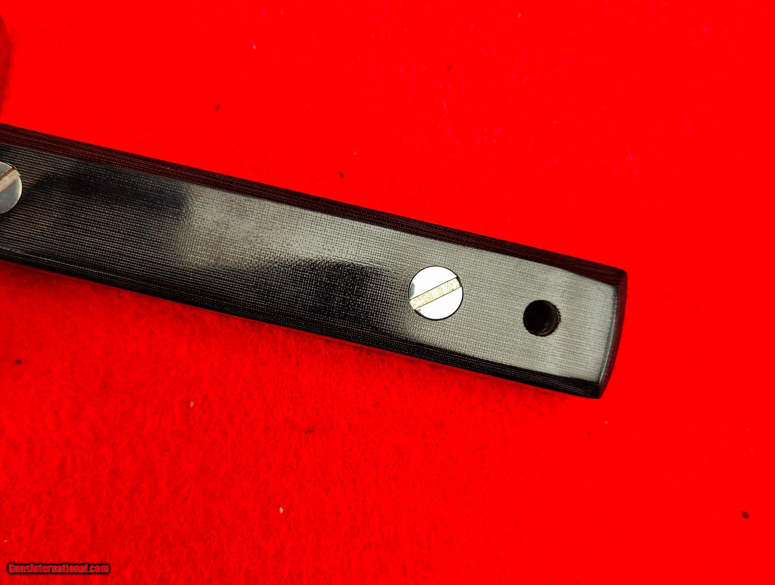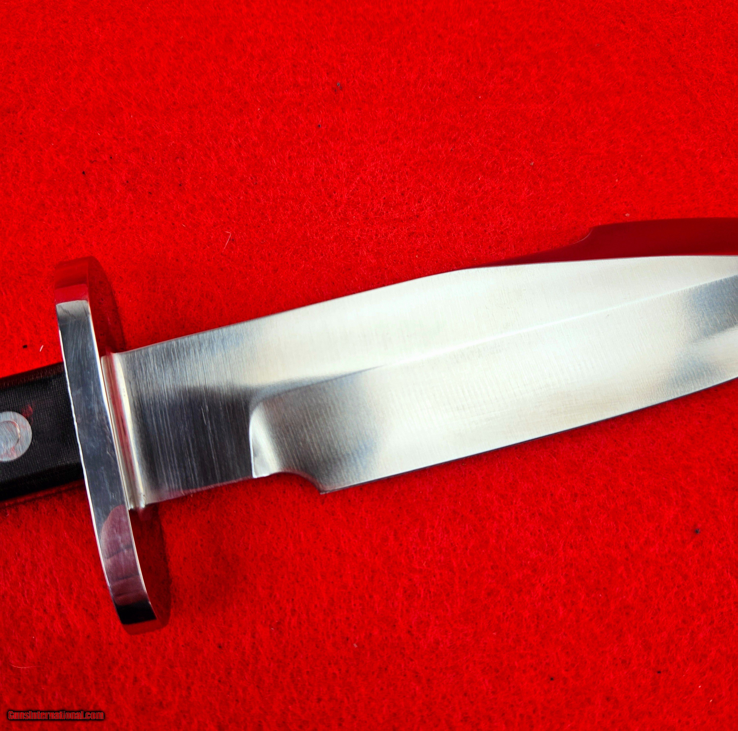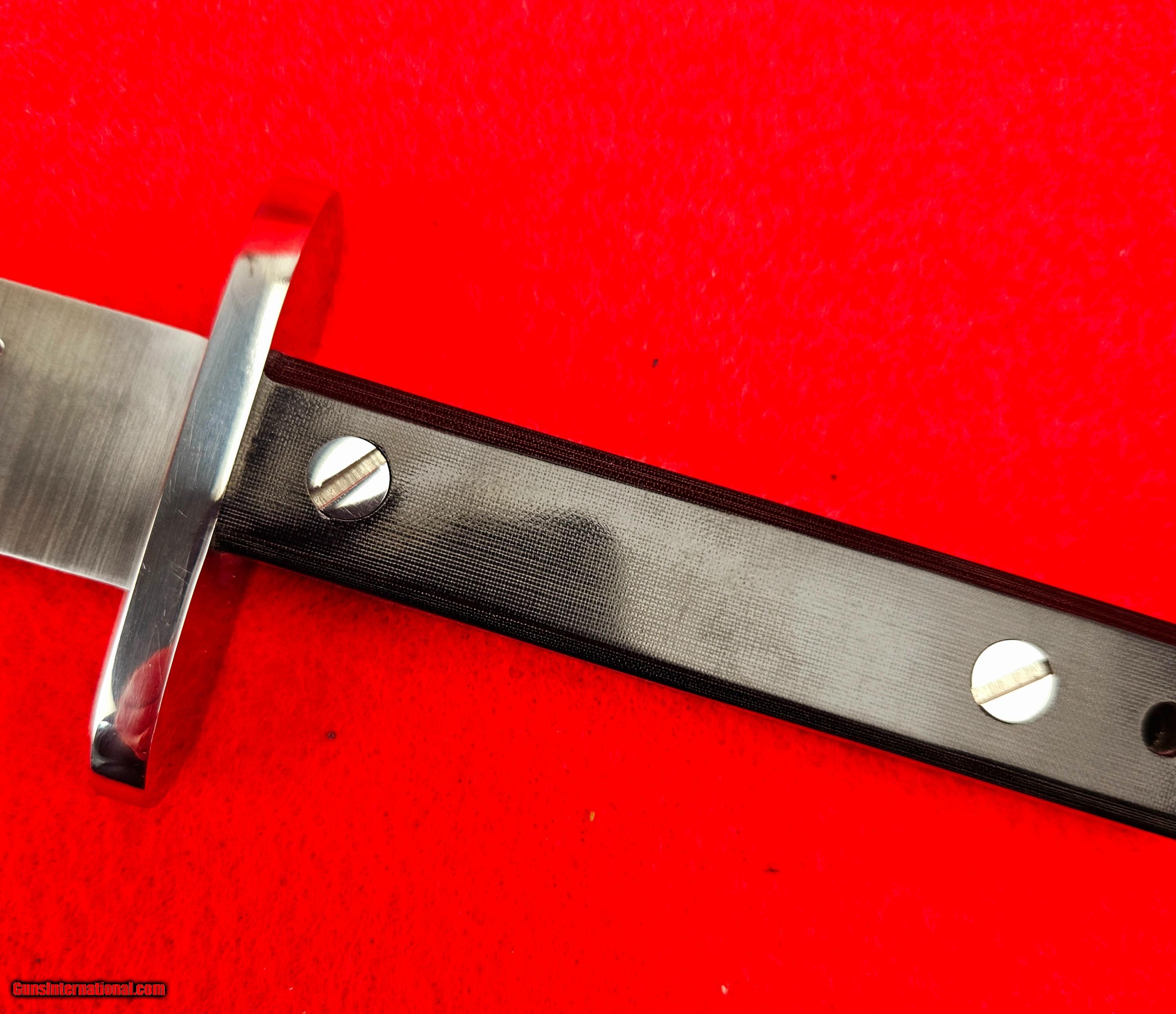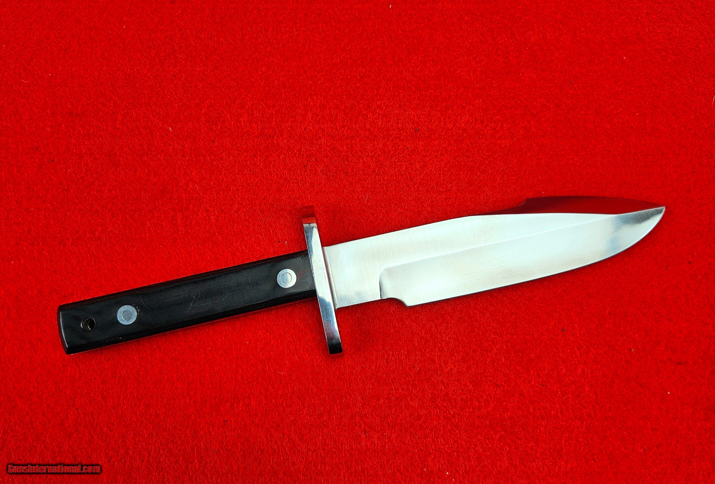 Description: For Your Consideration: Fresh From A Lifetime Collection, we have a New Old Stock - Randall #17 Astro Knife. This knife was originally designed by Bo Randall in 1962 on a contract for NASA. Bo won the contract and his design was officially used by the NASA Space Program throughout the 1960s. This is a really clean example, never has been used. Stainless blade, black micarta scales. Here's your chance to own a piece of Randall and NASA history. Price - $775 + Shipping Payment By PayPay G&S + 4% Personal Check, Money Order SOLD |