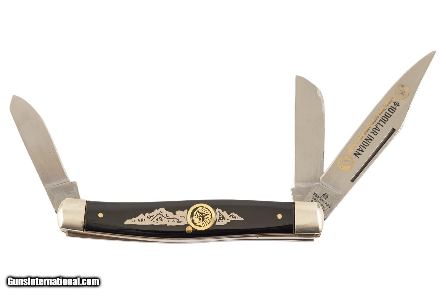 Description: ROBERT KLAAS $10 DOLLAR INDIAN FOLDING POCKET KNIFE SOLINGEN GERMANY NEW OLD STOCK EXCELLENT CONDITION PAYMENT BY CHECK OR MONEY ORDER ONLY ON THESE NON GUN ITEMS EMAIL INQUIRY ONLY ON THESE NON GUN ITEMS FREE SHIPPING! SOLD |
