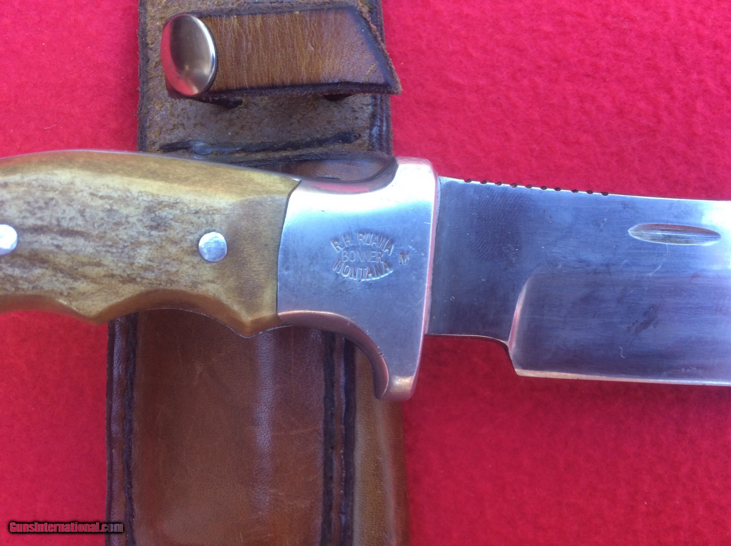 Description: For your viewing is a RUANA Model 21 B 6” M stamped hunting knife made between 1962 and 1982. Knife is used and does not have original sheath. This is a scarce knife as this is a 6” blade call or email fro more info etc. Thanks for looking SOLD |