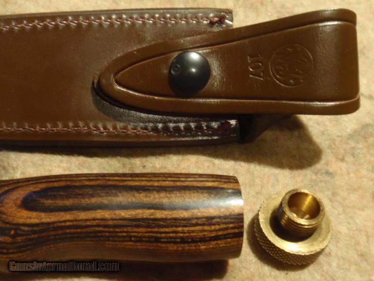 Description: SMITH & WESSON MODEL 6020 KNIFE. RARE OUTDOORSMAN KNIFE, DESIGNED BY BLACKIE COLLINS, CIRCA 1974. THIS KNIFE WAS PART OF THE ORIGINAL SERIES OF KNIVES S&W EVER MADE!! S&W KNIFE MODEL 6020. 5 5/8" 440 STAINLESS STEEL MIRROR-POLISHED BLADE WITH S&W LOGO ON ONE SIDE. SERIAL NUMBER 6278 ON THE OTHER SIDE. ONLY 13,000 OUTDOORSMAN KNIVES WERE MADE...FEWER THAN ANY OTHER PATTERN!! HOLLOW WESSONWOOD GRIP WITH HEAVY BRASS KNURLED CAP. "SMITH & WESSON" STAMPED ALONG THE TOP SPINE. 10 3/8" OAL. THIS IS A SOLID KNIFE, AND WEIGHS MORE THAN 15 OZ!!! QUALITY, BROWN LEATHER SHEATH WITH STYLE NUMBER 107 AND S&W LOGO IMPRESSED ON REVERSE. THIS KNIFE WAS PURCHASED NEW AROUND 1975. ORIGINAL OWNER. IT IS 100% BRAND NEW, MINT, UNUSED AND UNSHARPENED!!! THESE FIRST-SERIES KNIVES ARE VERY SCARCE!!! ...AND HIGHLY COLLECTIBLE!!!