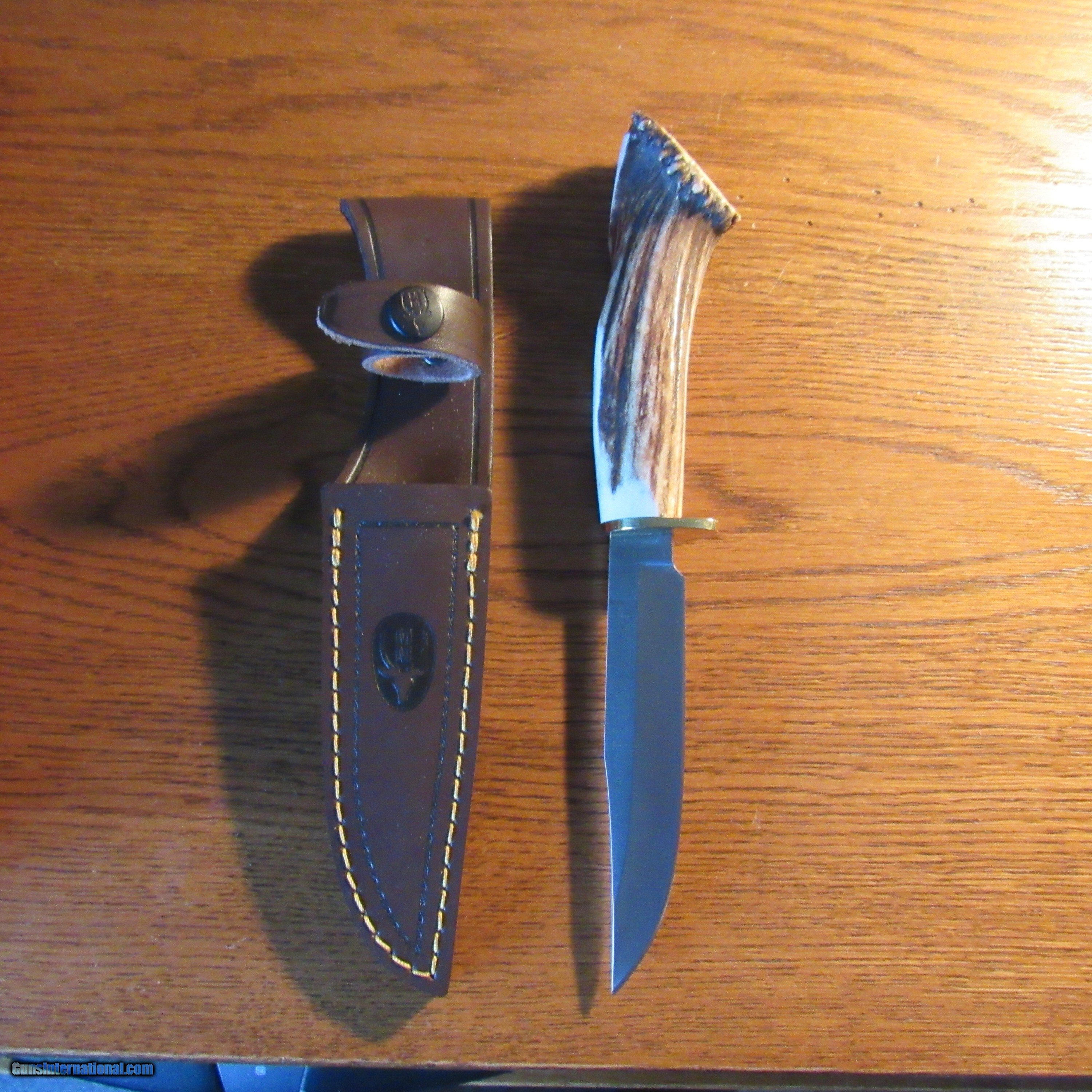 Description: Ruko cutlery of Spain produces very fine knives. This one is from the Muela collection. It has a razor sharp 4.75 inch blade, stag horn handle and heavy leather sheath. This knife is brand new, never used. Price: $90.00 Shipping: $5.00 Contact Seller |