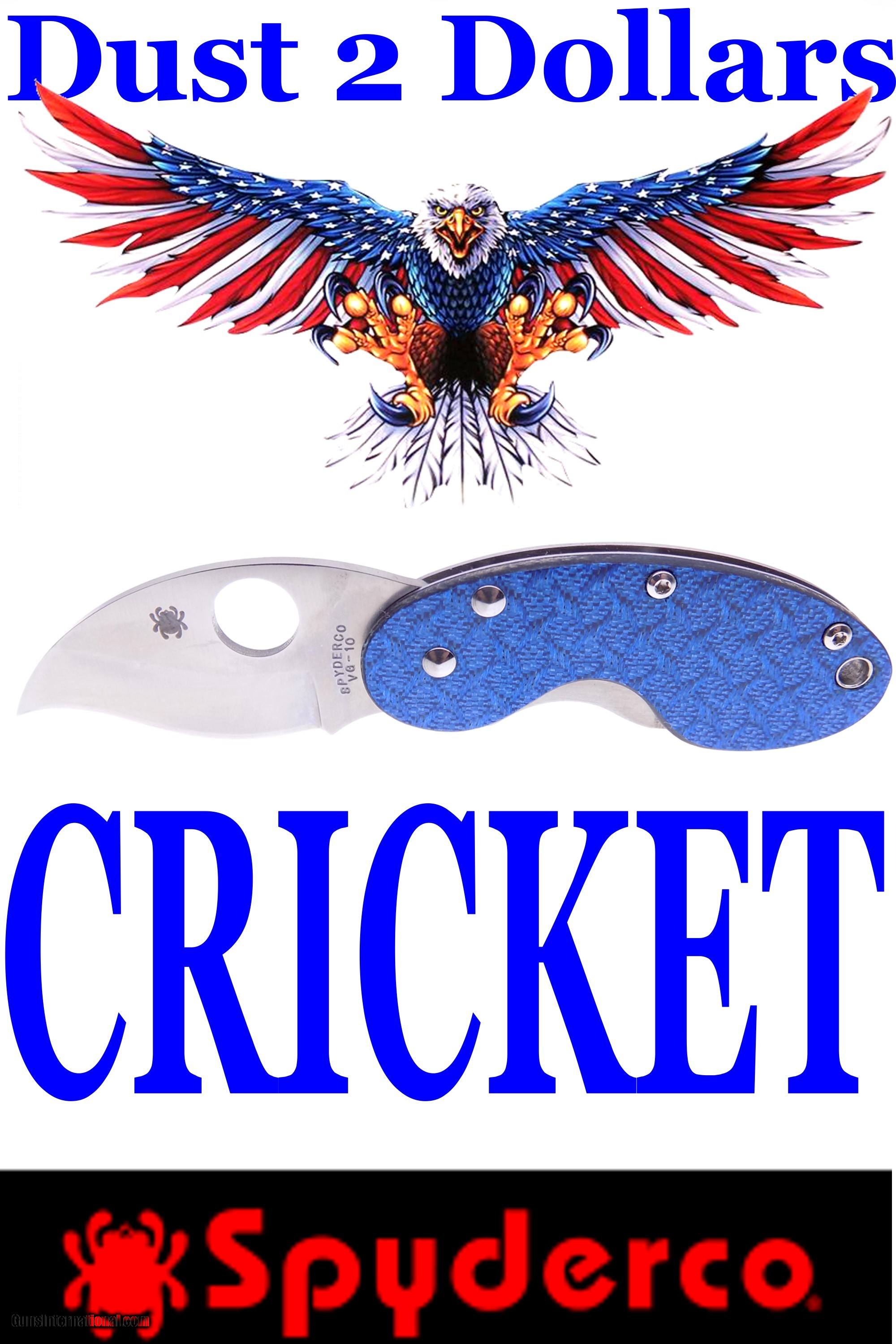 Description: Another “Hard to Find” offering by Dust 2 Dollars. We offer you a Spyderco Cricket Blue Nishijin Frame Lock Knife (1.9" Satin) C29GFBLP that is in “Excellent” as new condition. This Spyderco knife is just one of a large number of Custom and Quality knives we will be listing from a large collection. All of these knives are new but the boxes were not found for any of them. The knife is all original and the blade has not been touched. It has not been carried and was just put away after it was purchased new. $125 plus $10 shipping for USPS Priority Mail insured to you. The total price is $135 for payments made by USPS money orders or Cashier’s Check. $140 for payment made through PayPal that includes signature required for delivery. SOLD |
