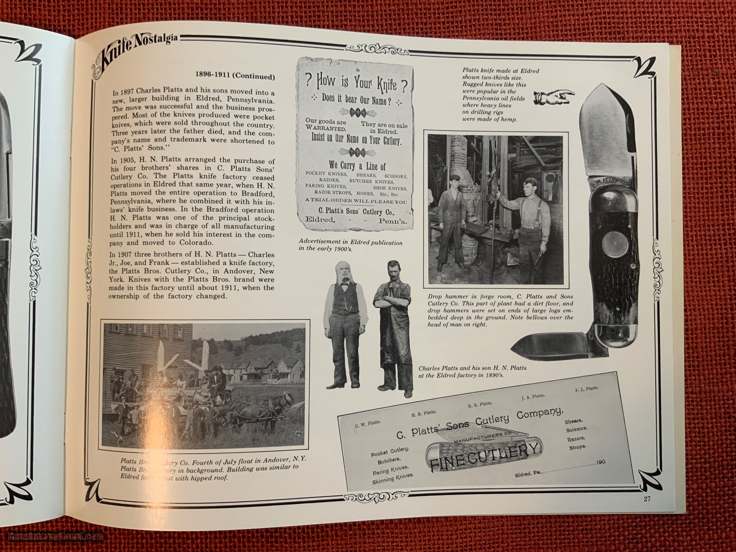 Description: WESTERN KNIVES -and KNIFE NOSTALGIA- HISTORY AND INSIDE LOOK AT WESTERN CUTLERY CO. BOULDER,COLORADO - COPYRIGHT 1975-32 PAGES-8 1/2''X11''- 50 YEARS OLD!-EXCELLENT CONDITION- LOTS OF OLD FACTORY PHOTOS- $50-Add $10 shipping-USPS money order preferred Price: $50.00 Shipping: $10.00 Contact Seller |