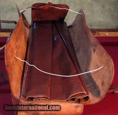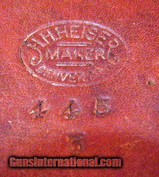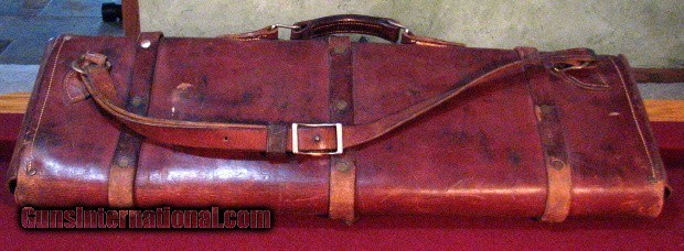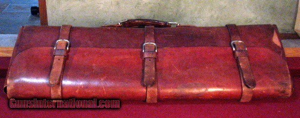 Description: Rare H.H. Heiser, Denver leather case for three barrels. Outer case of very thick and heavy harness leather with inner sleeves of very soft and supple leather. For barrels up to 28". Overall very good condition. Inside flap marked with previous owners name. Missing small non-essential inside buckle which could easily be replaced. I have never seen another. SOLD |