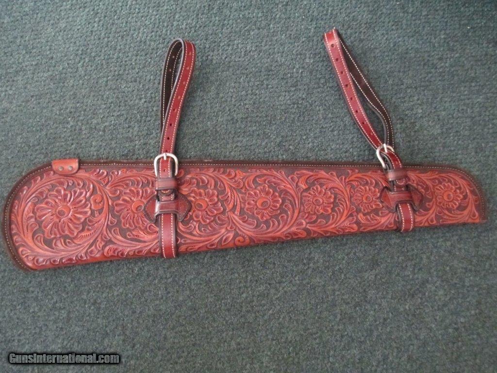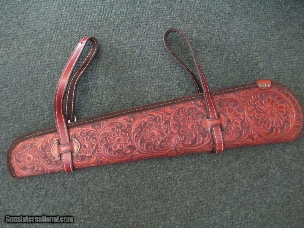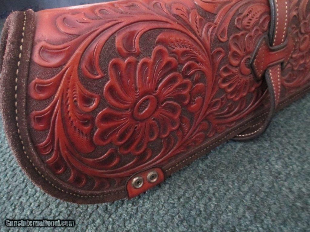 Description: Hand tooled leather scabbard, suede lined, 31" length, leather straps, a Win 94 size gun will fit in this scabbard. A scoped rifle will not fit, new. For further information call John at 941-748-7318. SOLD |