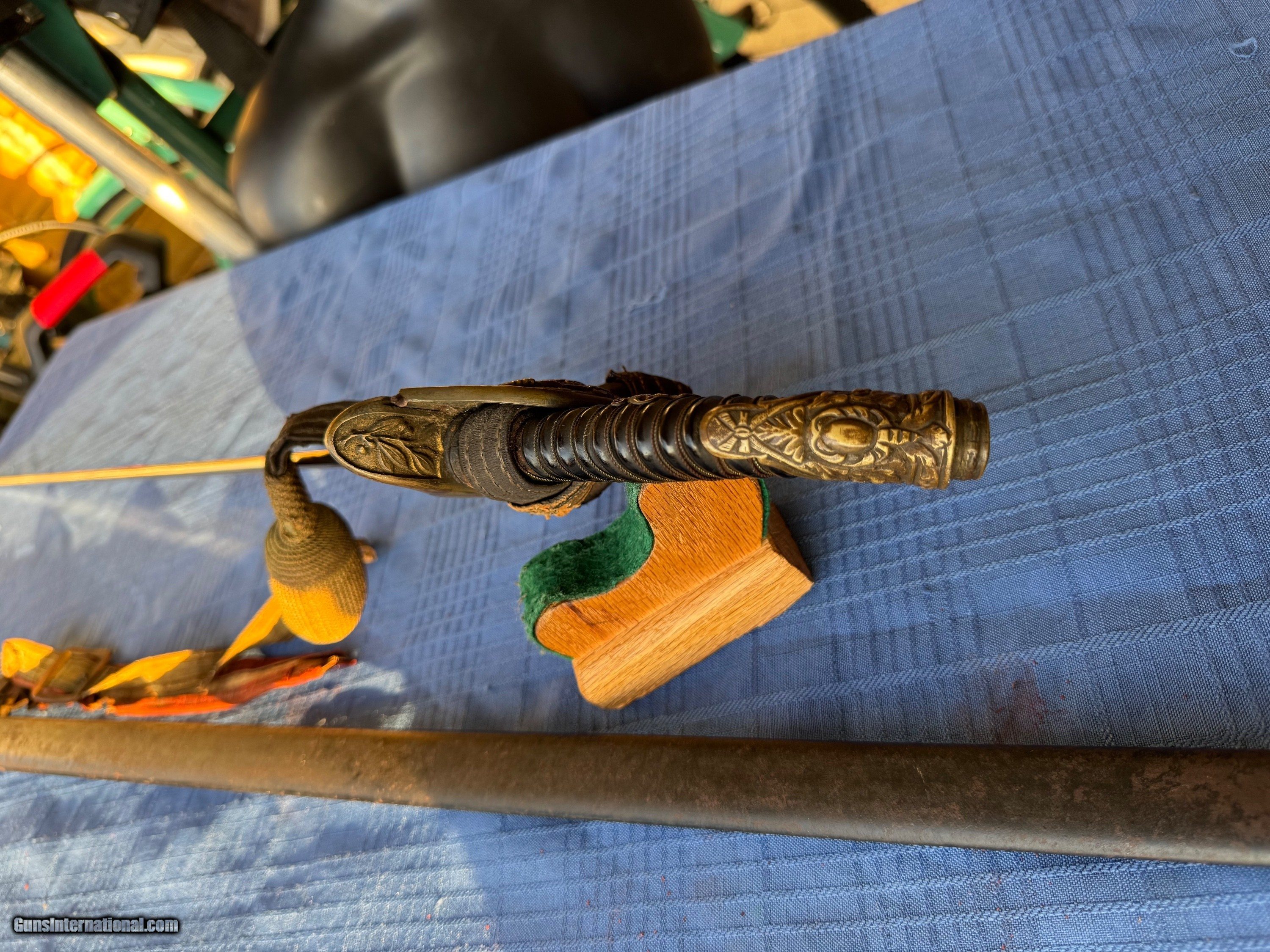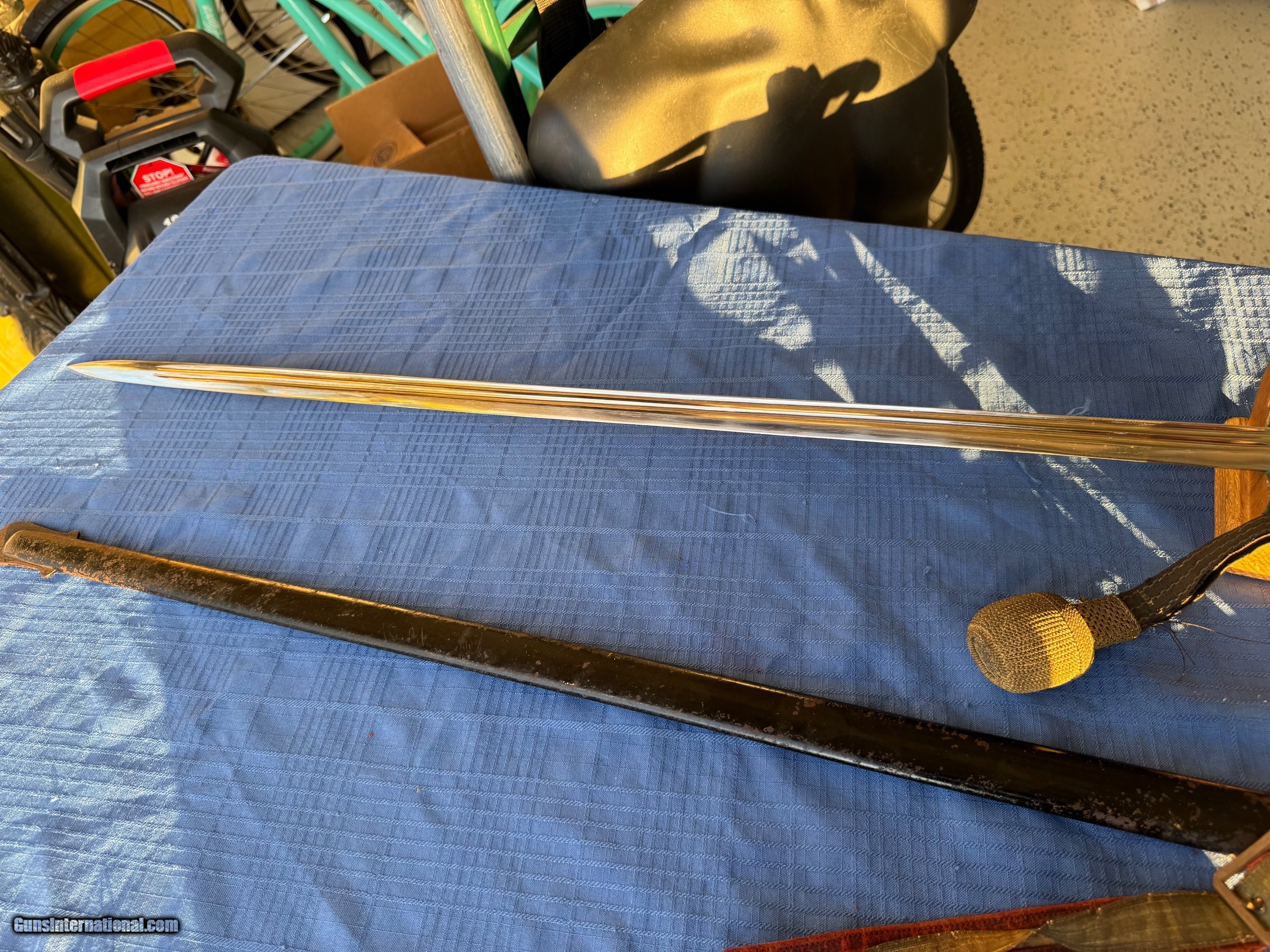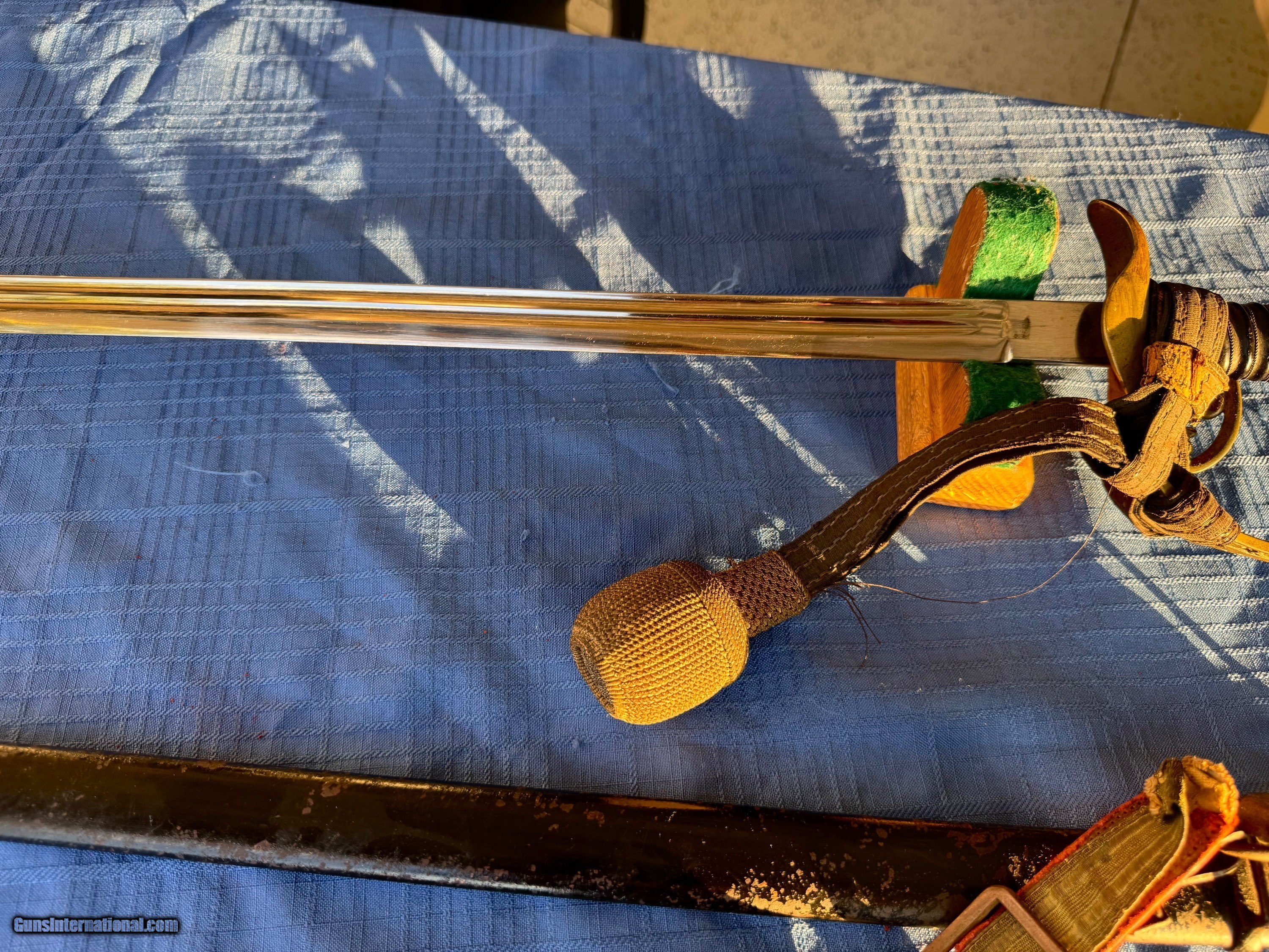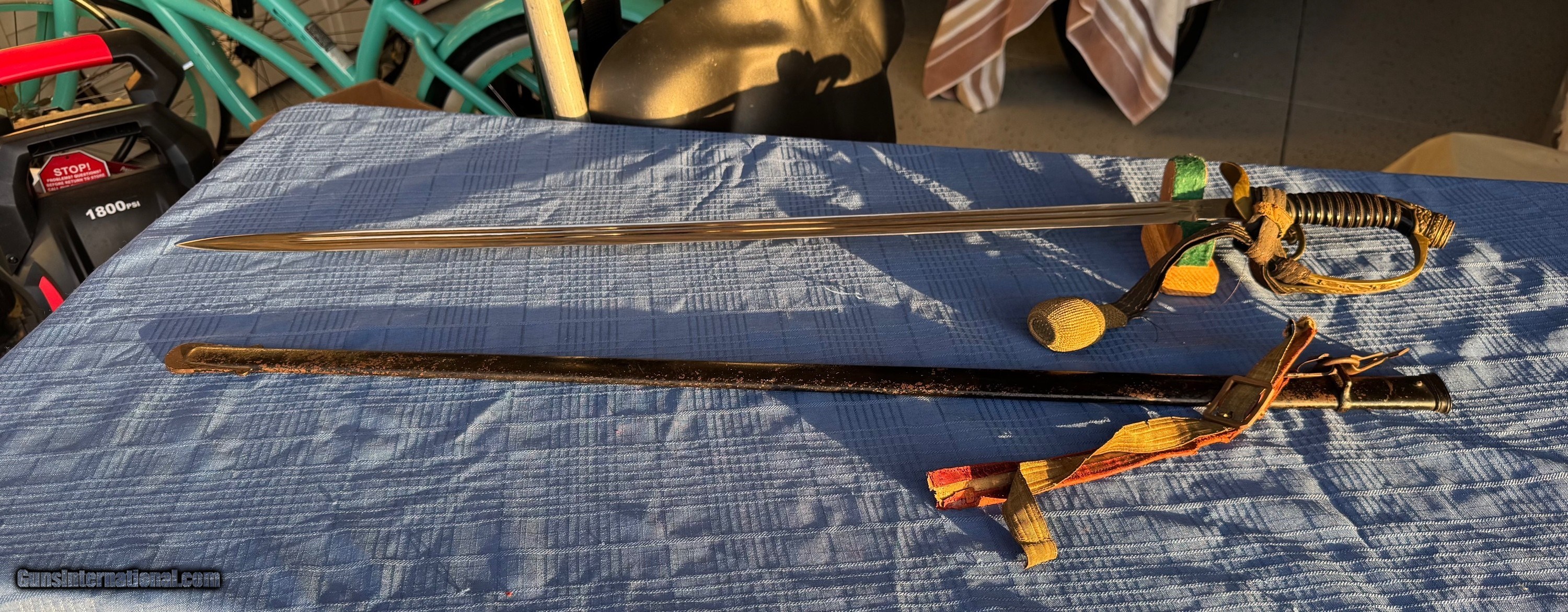 Description: Here's a Excellent Example of a Non- US Military Officers Sword with original scabbard ! Not sure of its origin ? I was told German ? Blade is in excellent condition. Handle is tight . Looks to be all original ! Super nice condition! Please review my photos and email me with any questions ? 3 day inspection as allways! Thank you , Little Jo Price: $575.00 Buy Now Contact Seller |