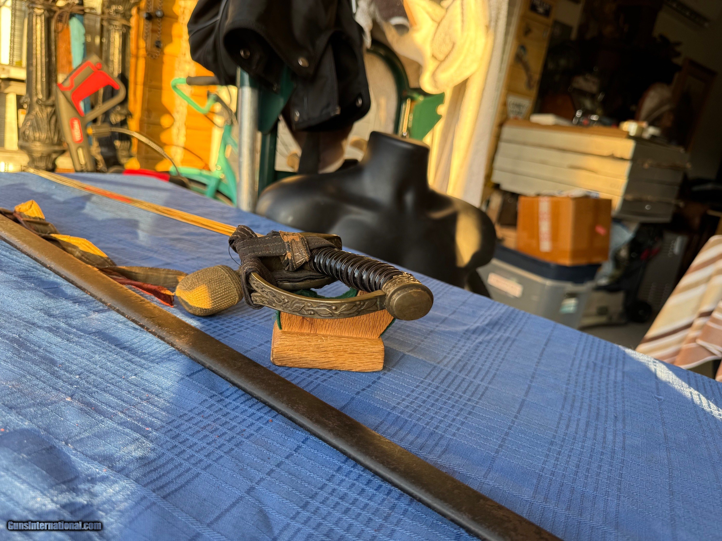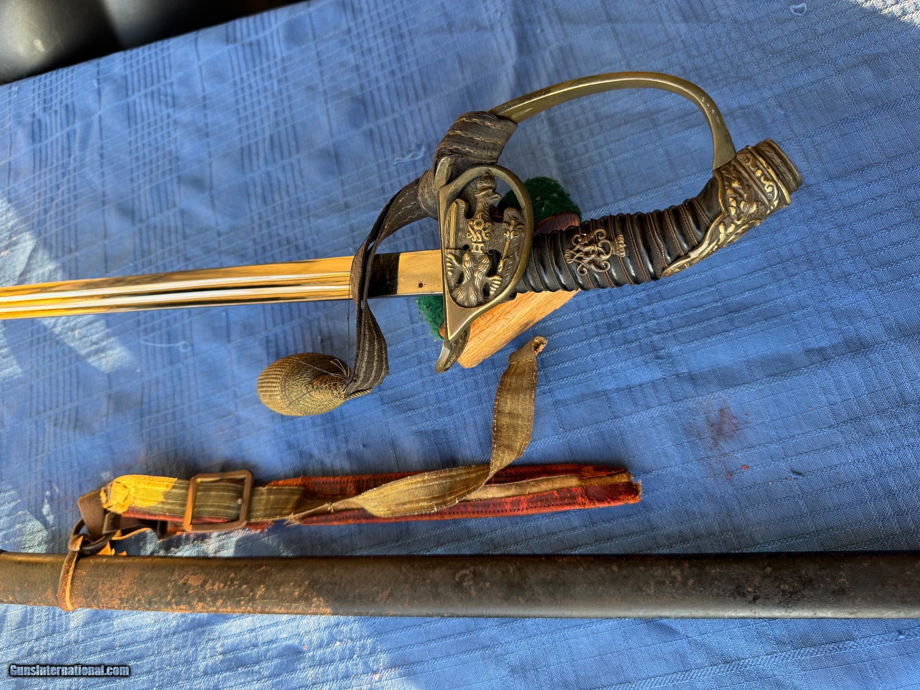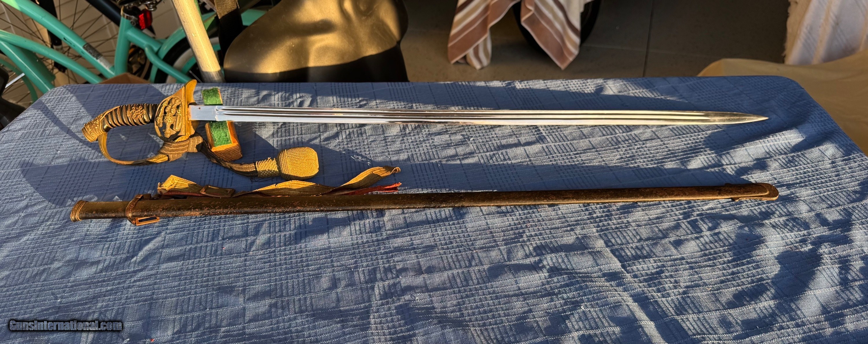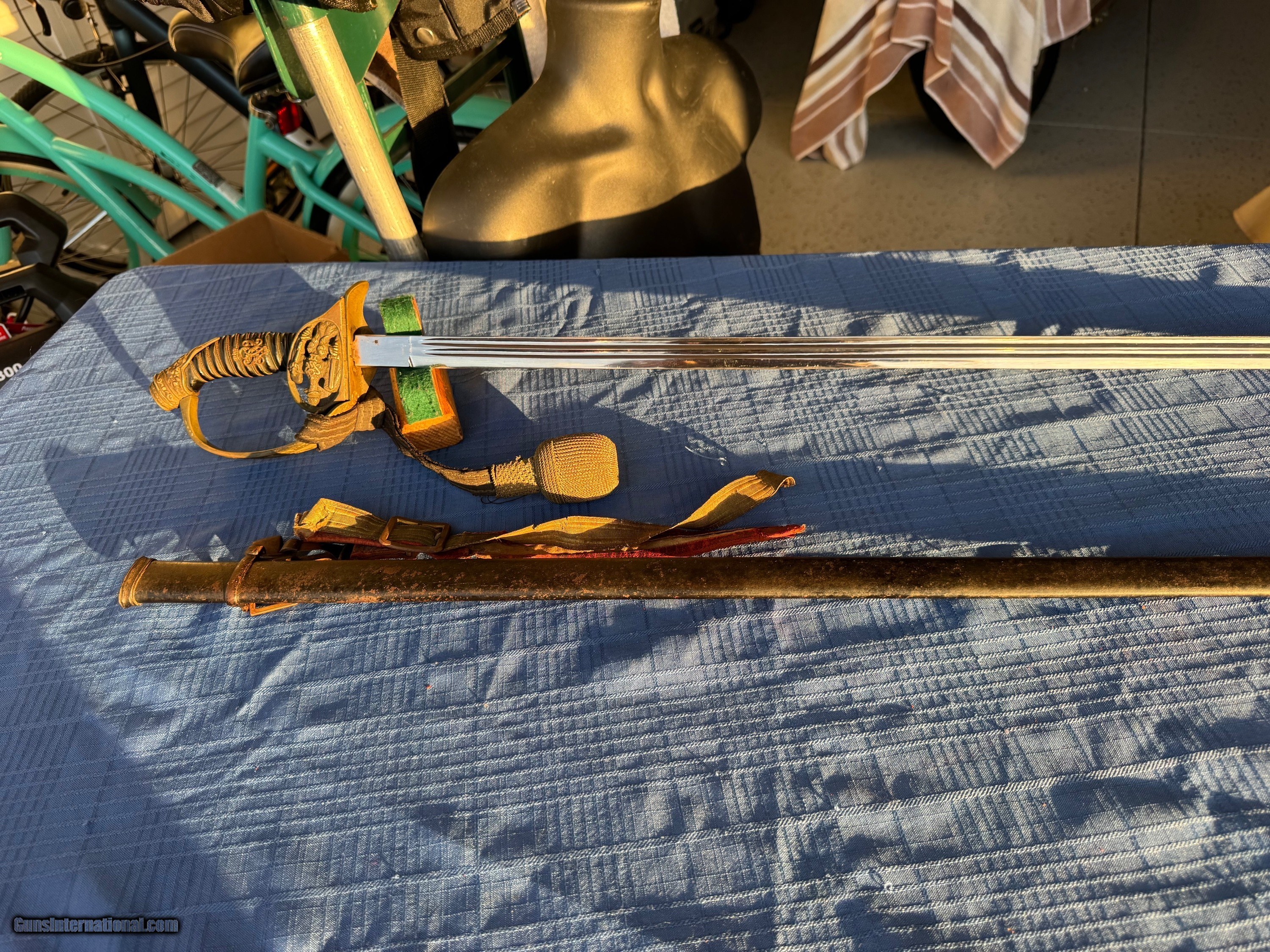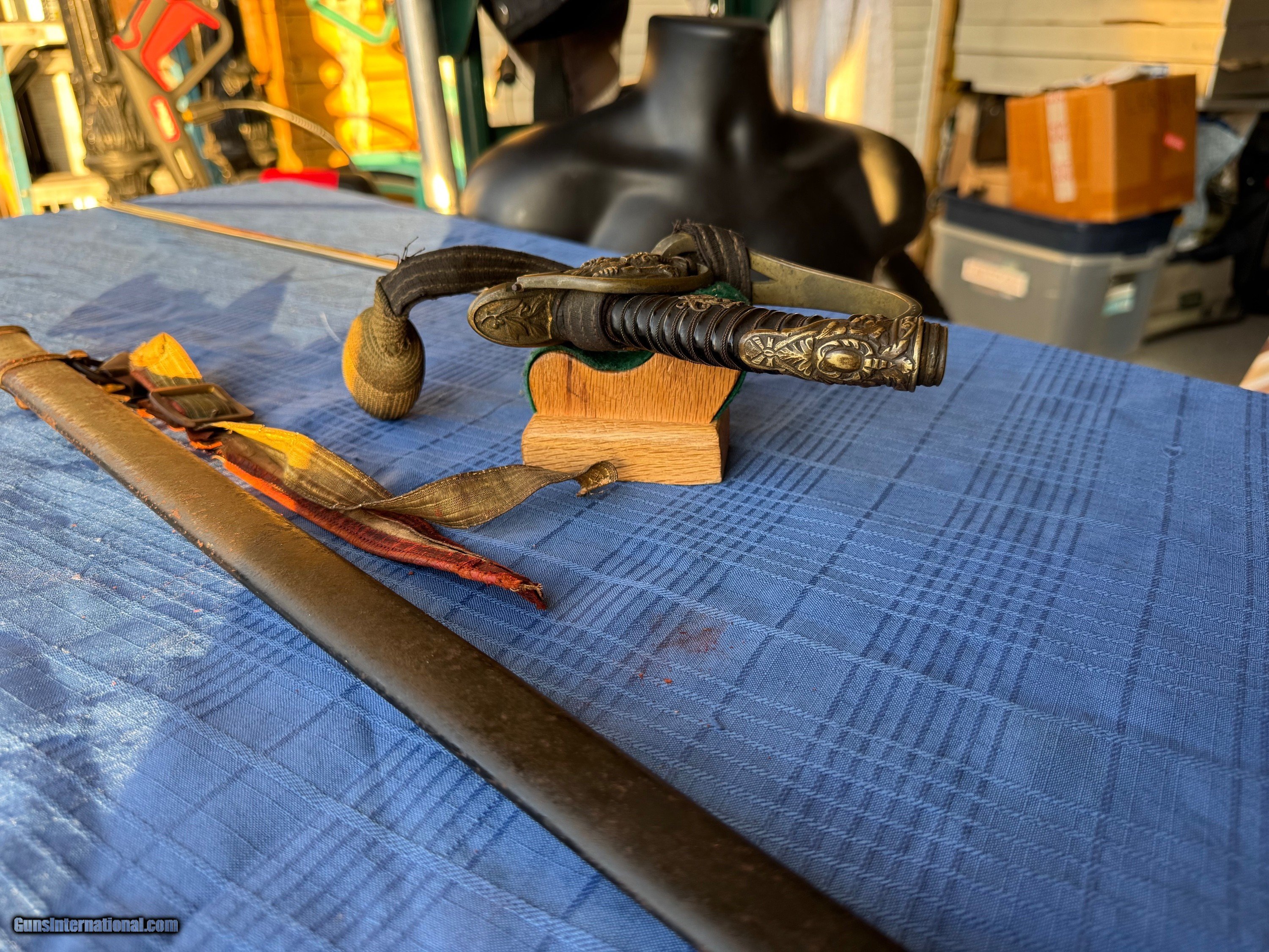 Description: Here's a Excellent Example of a Non- US Military Officers Sword with original scabbard ! Not sure of its origin ? I was told German ? Blade is in excellent condition. Handle is tight . Looks to be all original ! Super nice condition! Please review my photos and email me with any questions ? 3 day inspection as allways! Thank you , Little Jo Price: $575.00 Buy Now Contact Seller |