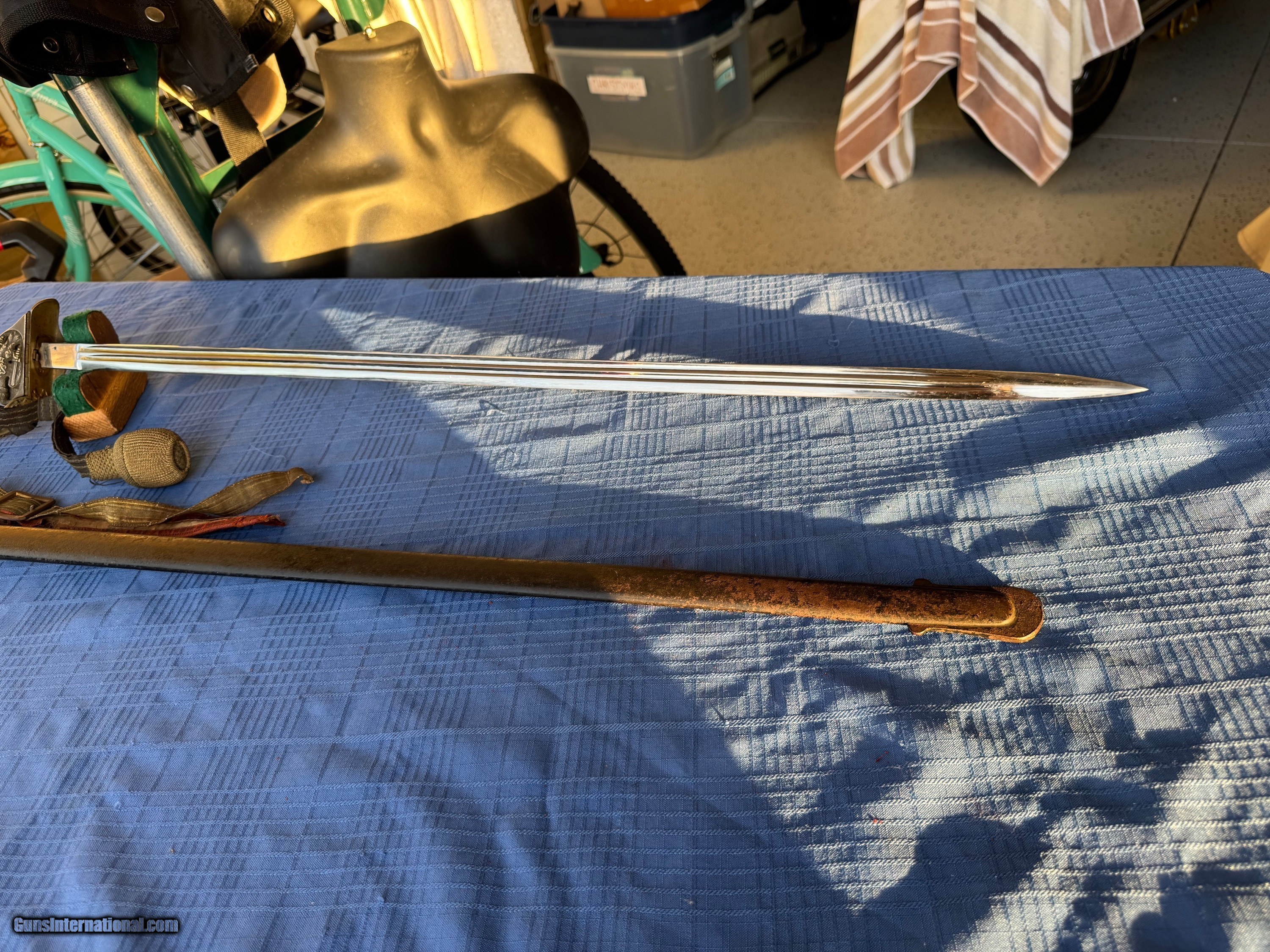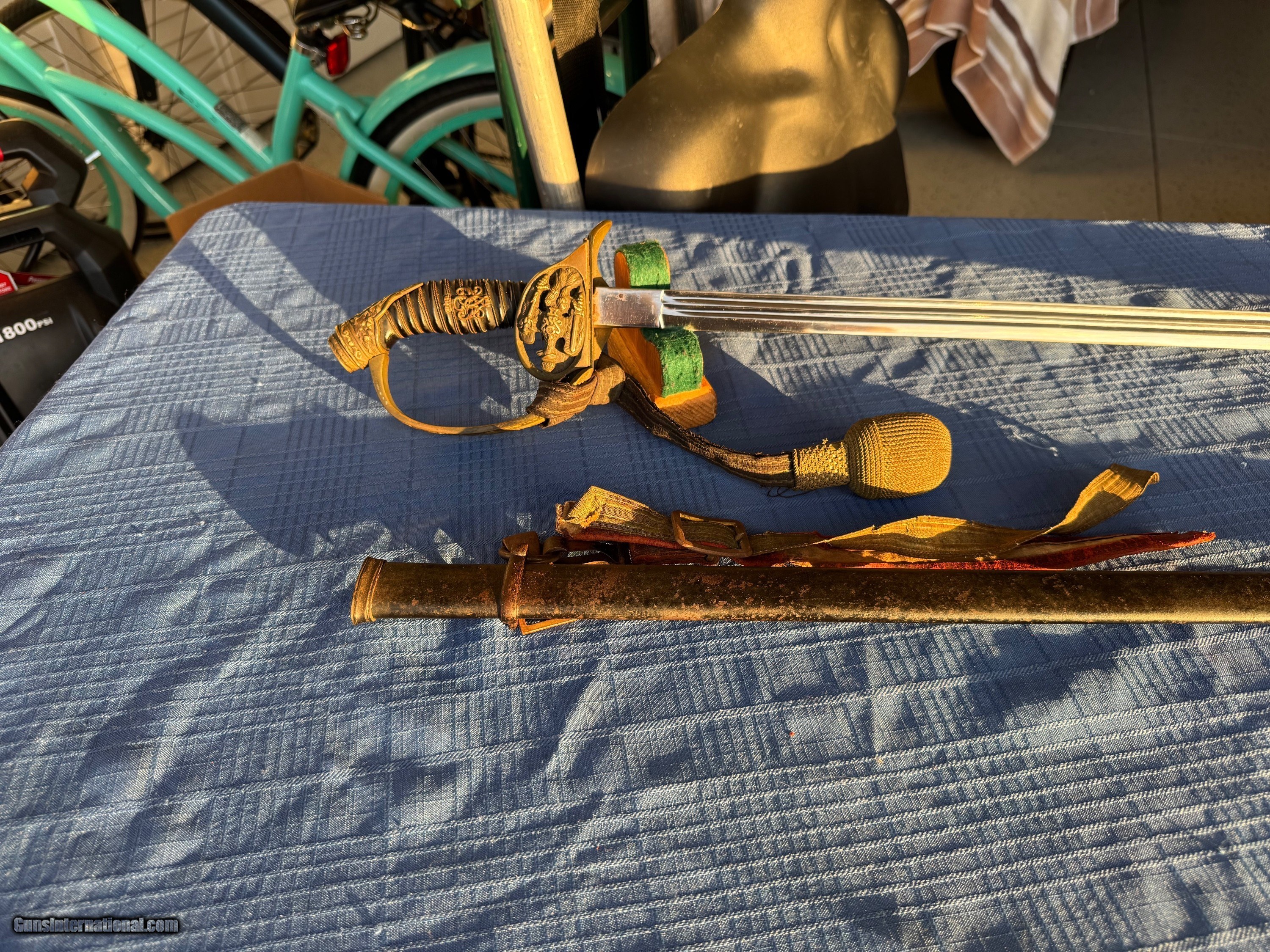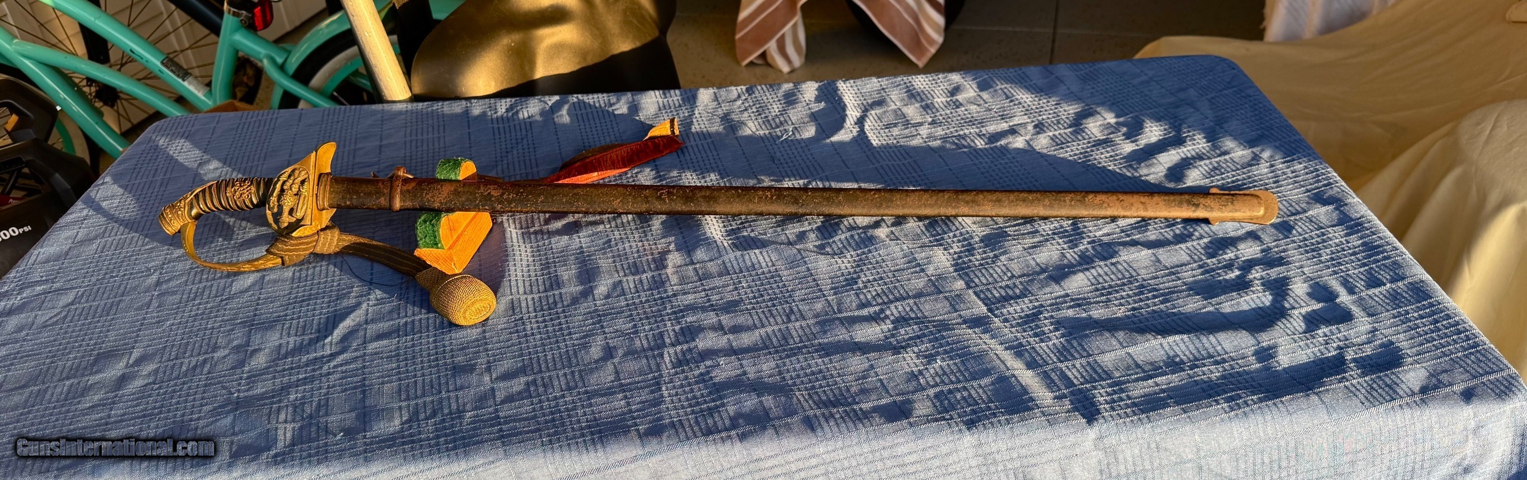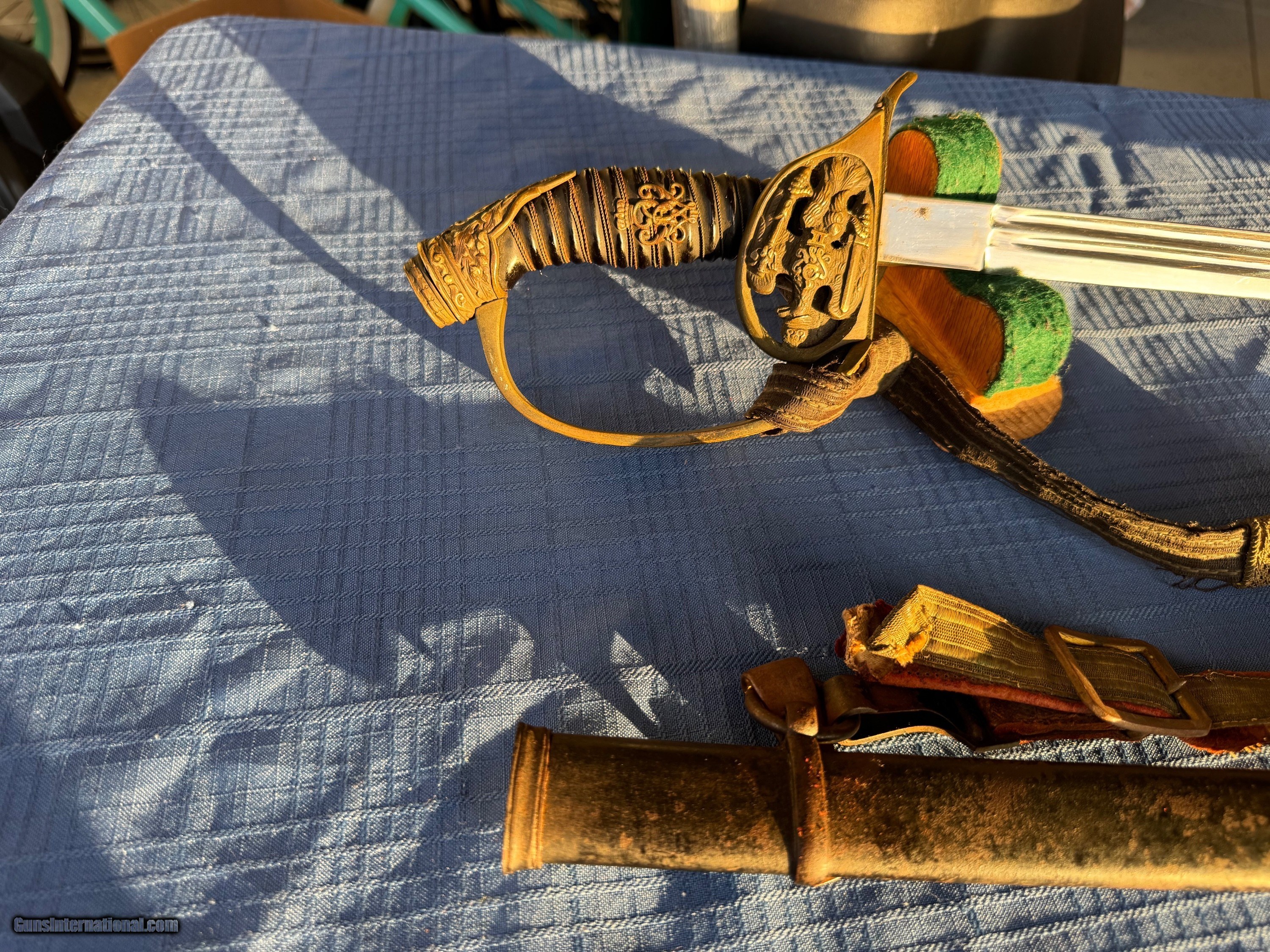 Description: Here's a Excellent Example of a Non- US Military Officers Sword with original scabbard ! Not sure of its origin ? I was told German ? Blade is in excellent condition. Handle is tight . Looks to be all original ! Super nice condition! Please review my photos and email me with any questions ? 3 day inspection as allways! Thank you , Little Jo Price: $575.00 Buy Now Contact Seller |