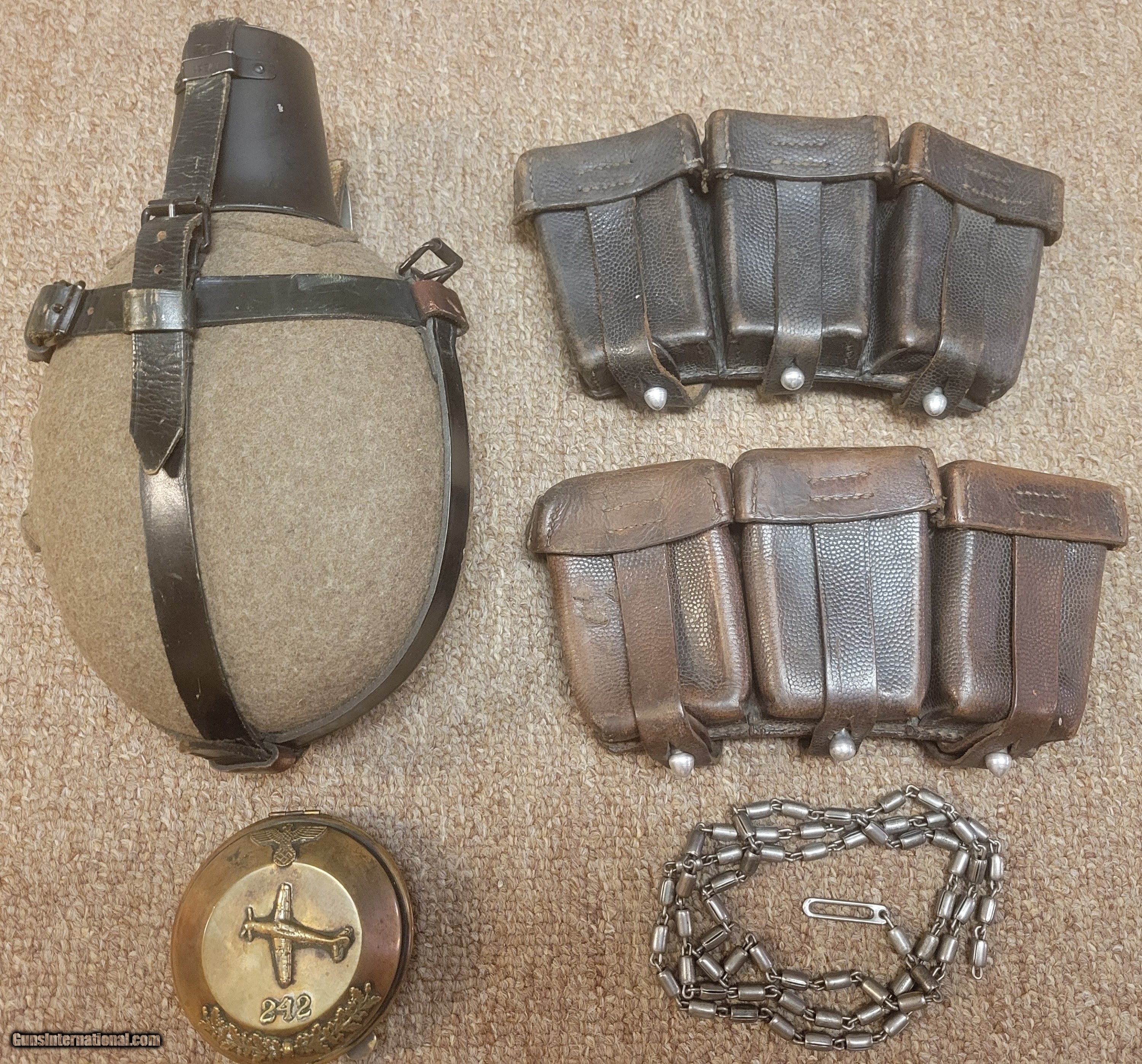 Ammo Pouches 1939 &1940, Like New WWII Aluminium German Canteen HRE/40, K98 Cleaning Chain, Compass