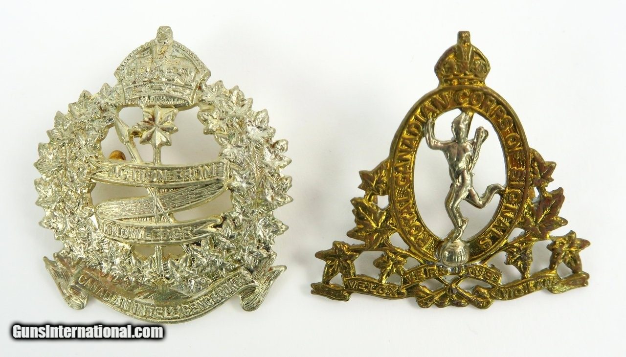 Description: "Two Canadian Cap Badges. Signals and intelligence. SOLD |