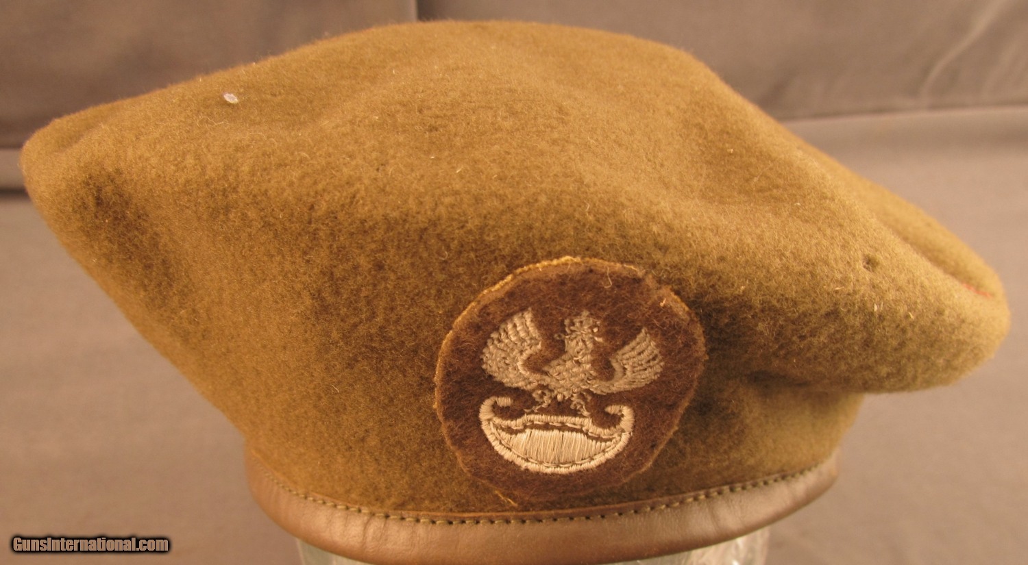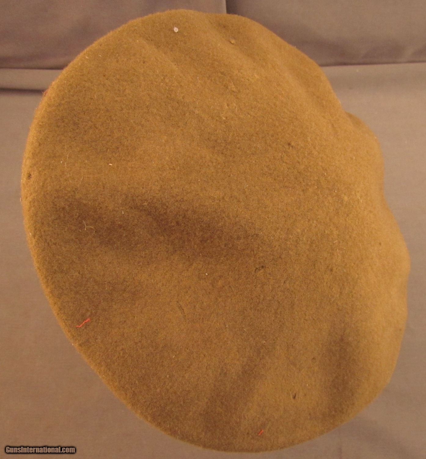 Description: This is a size 7 3/8, standard British Army khaki felt beret with olive leather edge strip and Broad Arrow stamped, Kangol Wear Ltd. maker's stencil. The interior tan cloth lining is in fine condition and intact with virtually no wear and has an original embroidered Polish Eagle badge sewn to the front, and unmarred metal ventilation grommets at the right side. The badge is likewise in excellent, virtually new condition, and the beret itself is a terrific example of a just post-World War II Free Polish uniform item. It would make a fabulous addition to a collection. SOLD Manufacturer: Kangol Model: Beret |